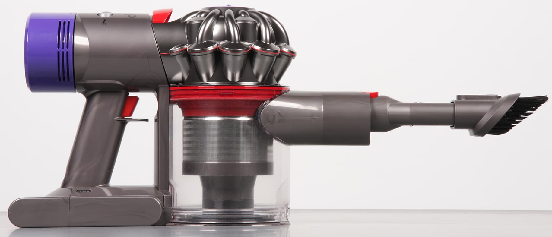 Из-за большой длины, смещенного вперед центра тяжести и немного увеличенного веса (в сравнении с тем же V8) пылесосом V10 трудно орудовать, когда нужно убирать вертикальные плоскости или совершать частые возвратно-поступательные движения при использовании немоторизированных малых насадок. Также с малыми насадками широкий торец пылесборника частично заслоняет убираемую область от глаз пользователя. Эти трудности можно преодолеть, если использовать удлинительную гибкую трубу. В случае V10 данный аксессуар существенно расширяет функциональность пылесоса.