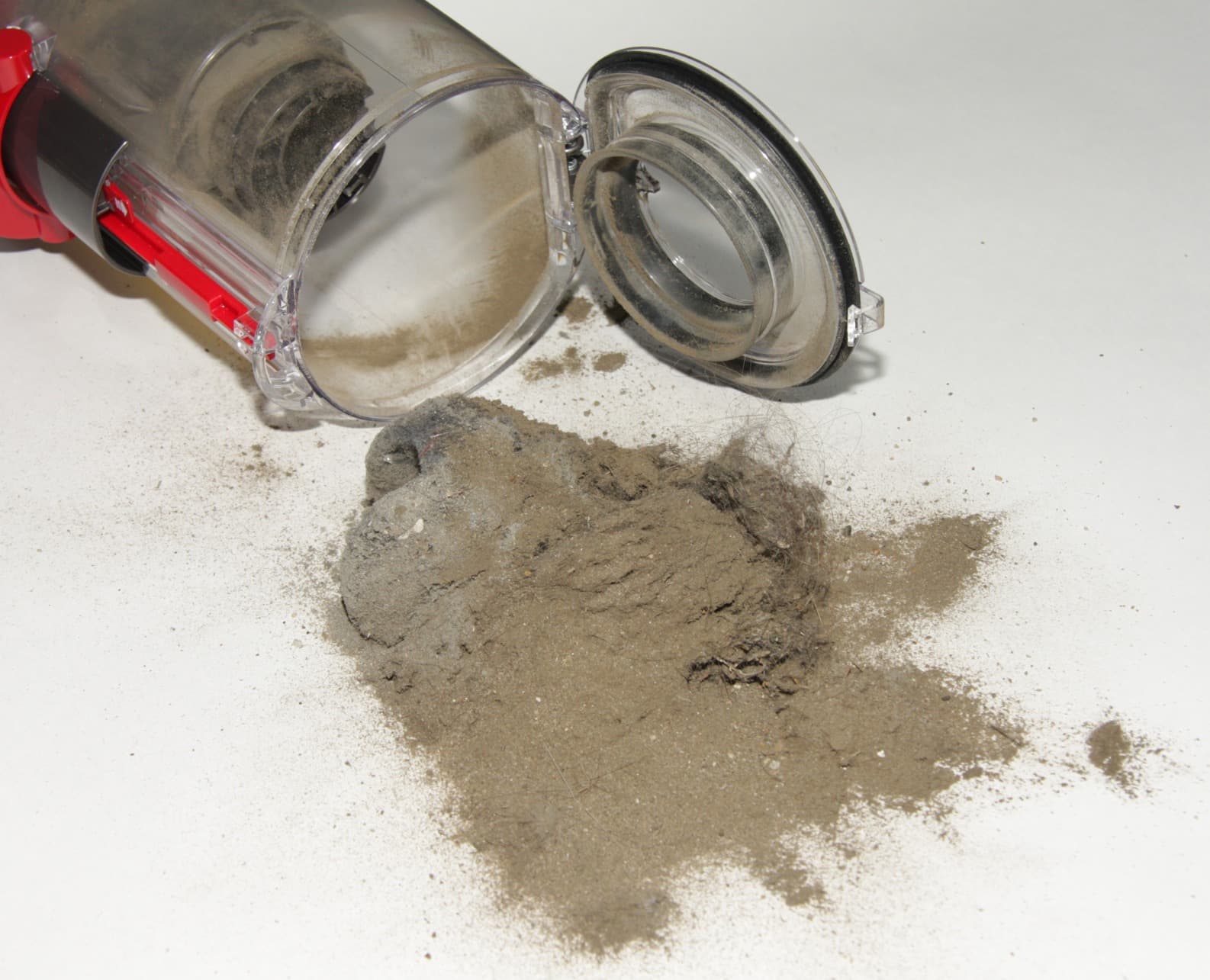 Опорожнять пылесборник очень удобно и контакт с пылью сводится к минимуму. Одно движение — и практический весь мусор оказывается в мусорном ведре или пакете. В данном тесте для наглядности — на листе бумаги.