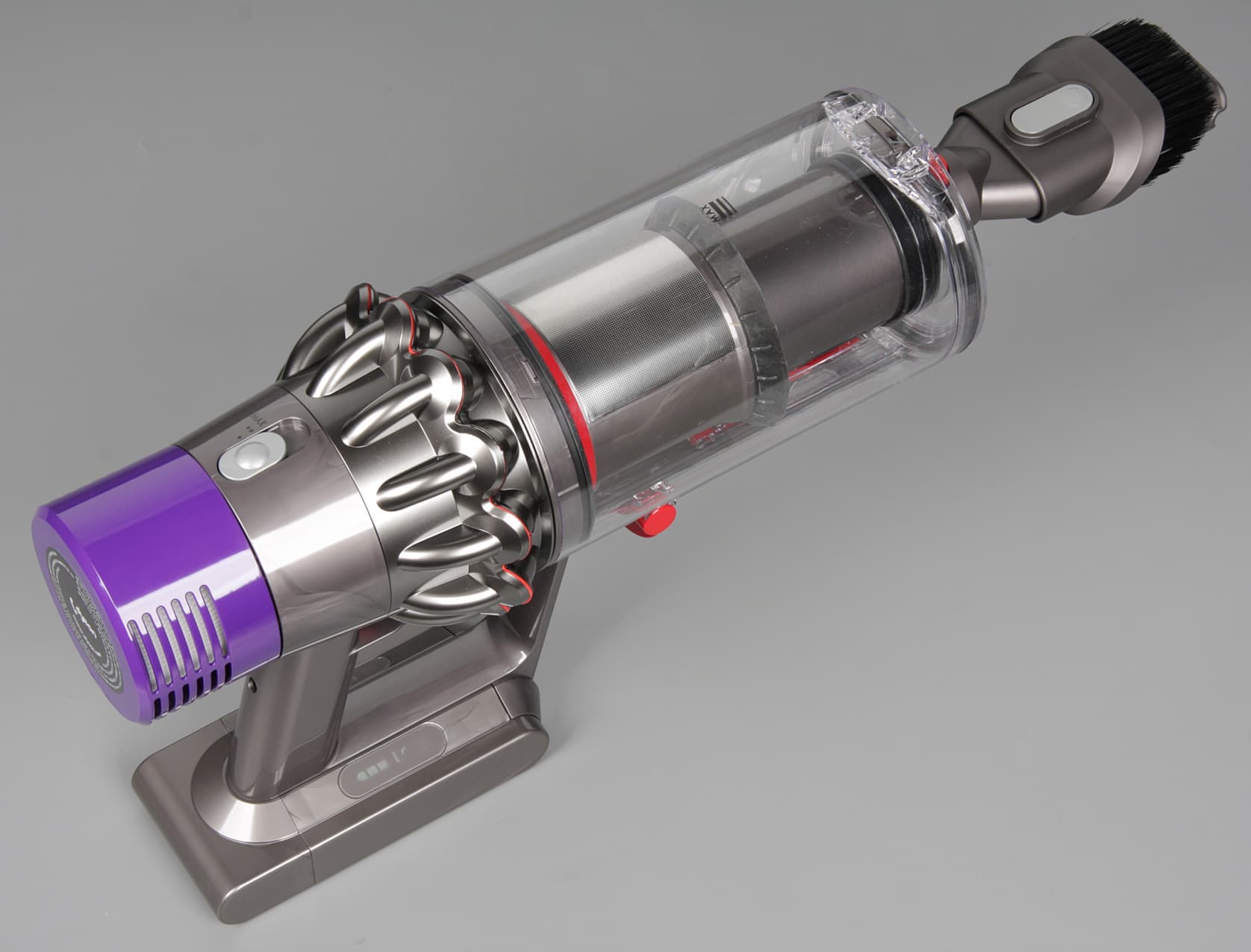 Данный пылесос оснащен бесколлекторным мотором с цифровым управлением. Крыльчатка и сам двигатель — это собственная разработка компании. Производитель пишет, что это «самый компактный, самый легкий и самый мощный двигатель для пылесоса из когда-либо созданных Dyson». Скорость вращения ротора мотора достигает 125 000 об/мин. Нагрузки на ось на таких скоростях очень большие, поэтому ее пришлось изготавливать из керамики. Жесткость стальной оси недостаточная.