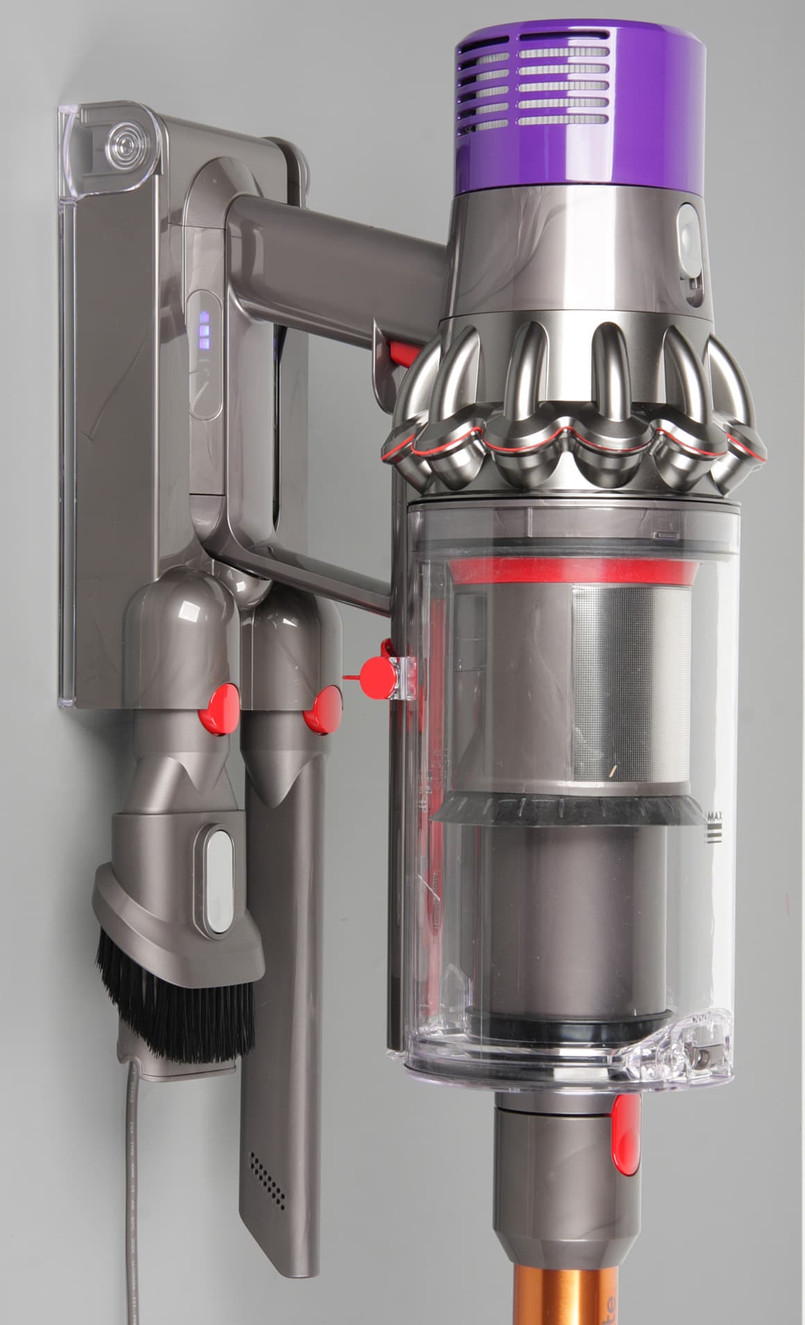 Новый настенный док удобнее в использовании, так как установка и снятие пылесоса теперь происходит одним движением. Как и в случае предыдущих моделей с доком, он меняет типичный сценарий уборки. Не нужно искать провод и подключать им пылесос для зарядки аккумулятора. Не нужно откуда-то доставать пылесос и любимые насадки. Все находится в одном месте, в постоянной готовности. Убирать можно по мере необходимости и локально, с минимальными затратами времени. С обычным проводным большим и тяжелым пылесосом частые уборки просто не оправданы из-за длительного подготовительного этапа. В итоге, несмотря на ограниченное время работы, с аккумуляторными пылесосами Dyson поддерживать чистоту проще, чем с проводными.