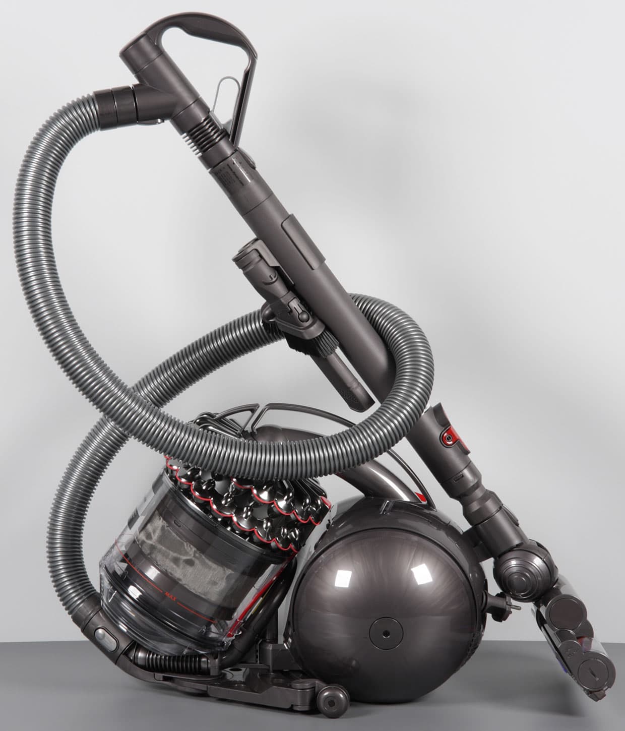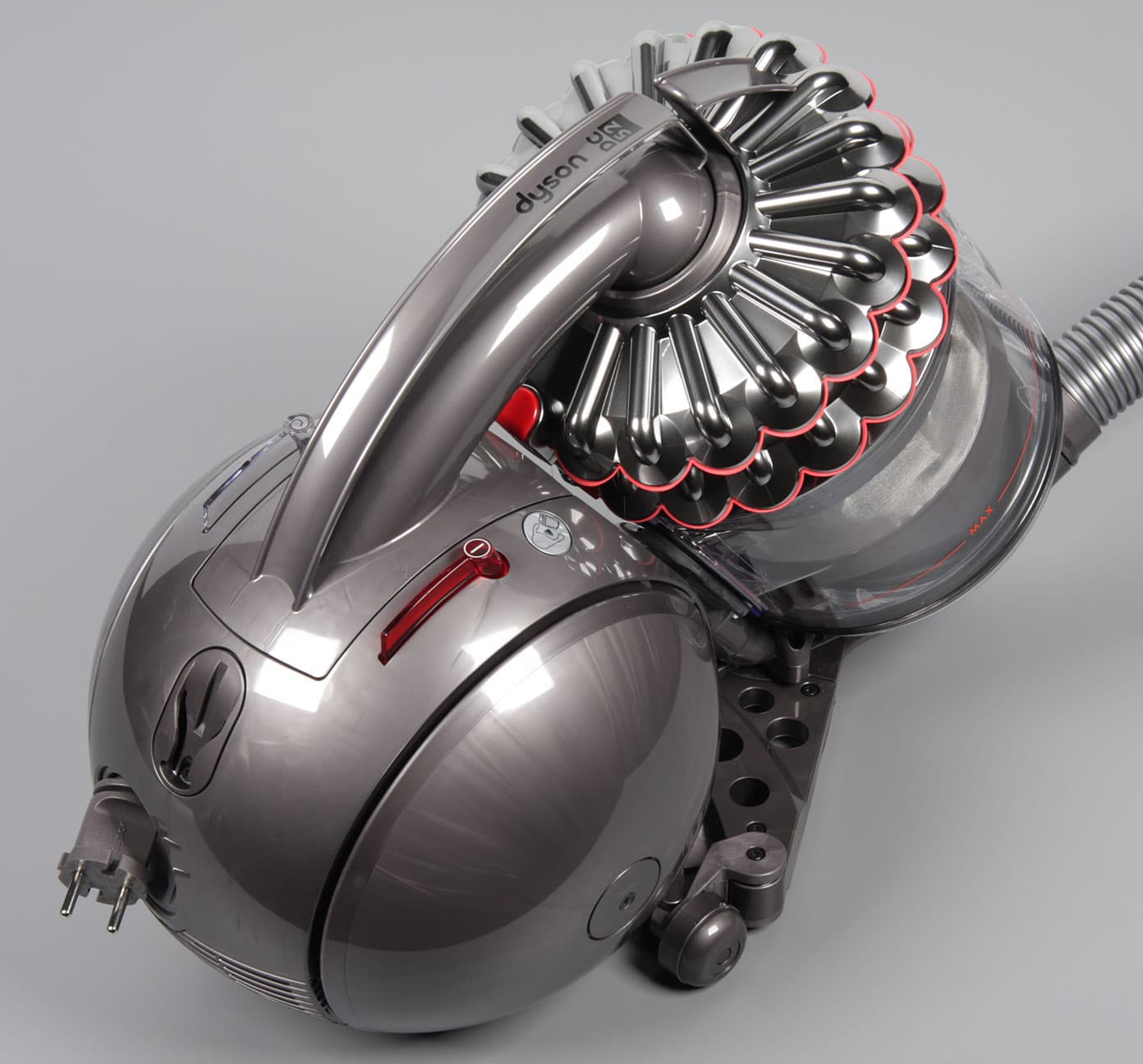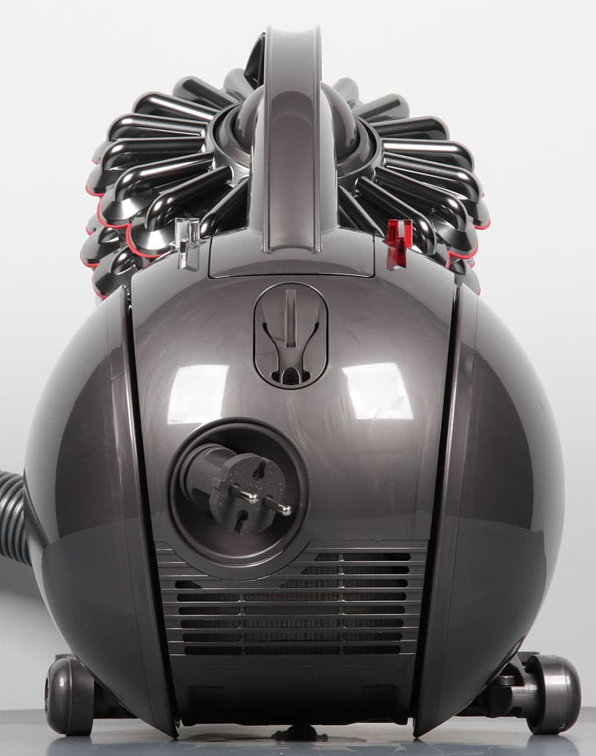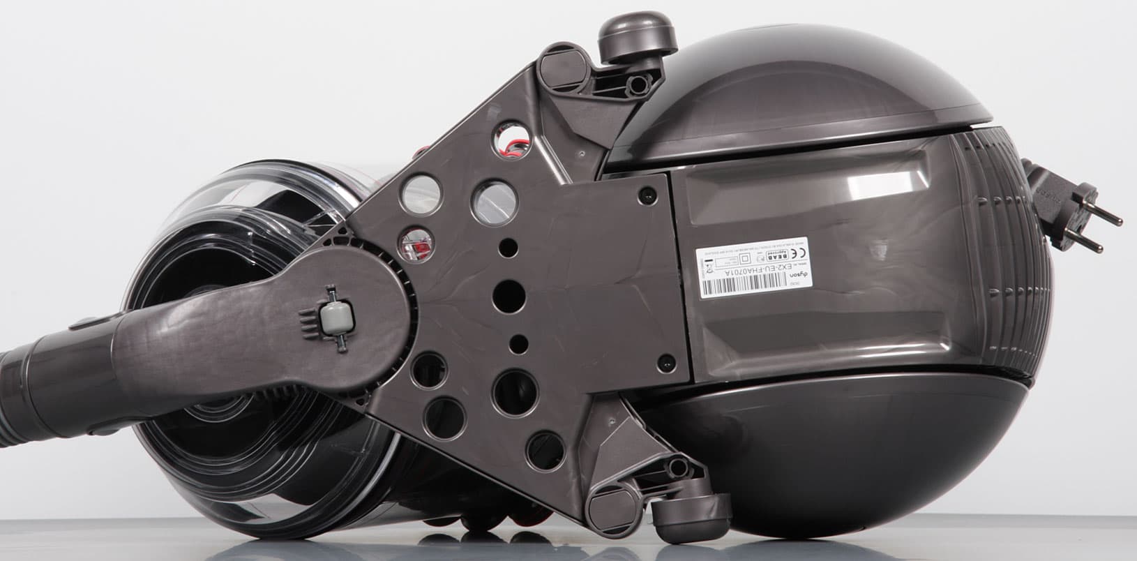 Дизайн для напольного пылесоса очень необычный — корпус разделен на шарообразную и цилиндрическую части. Первая — это блок мотора, вторая — это пылесборник с циклонами. При этом сегменты по бокам шаровидного брюшка являются большими колесами, вращающимися, как заявляется, на шариковых подшипниках. Ширина всей конструкции в сборе (блок мотора и пылесборник с циклонами) составляет 260 мм, длина — 496 мм, высота — 357 мм.