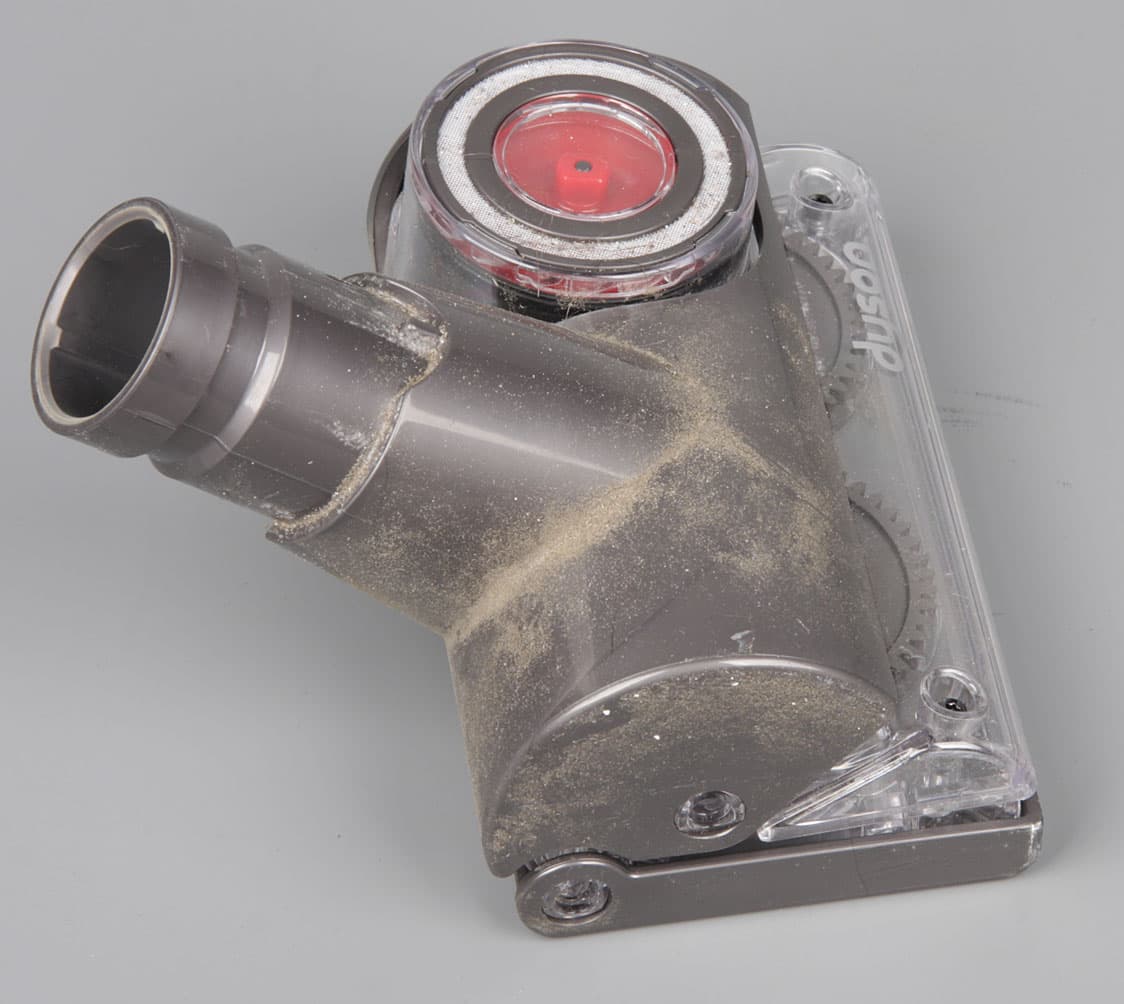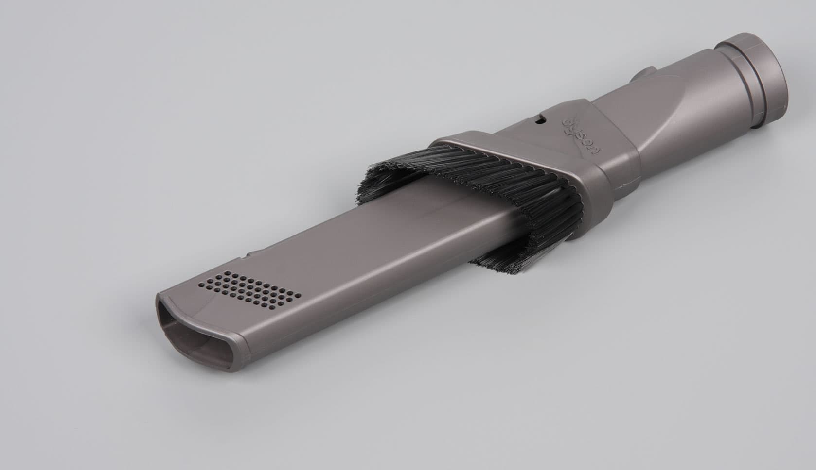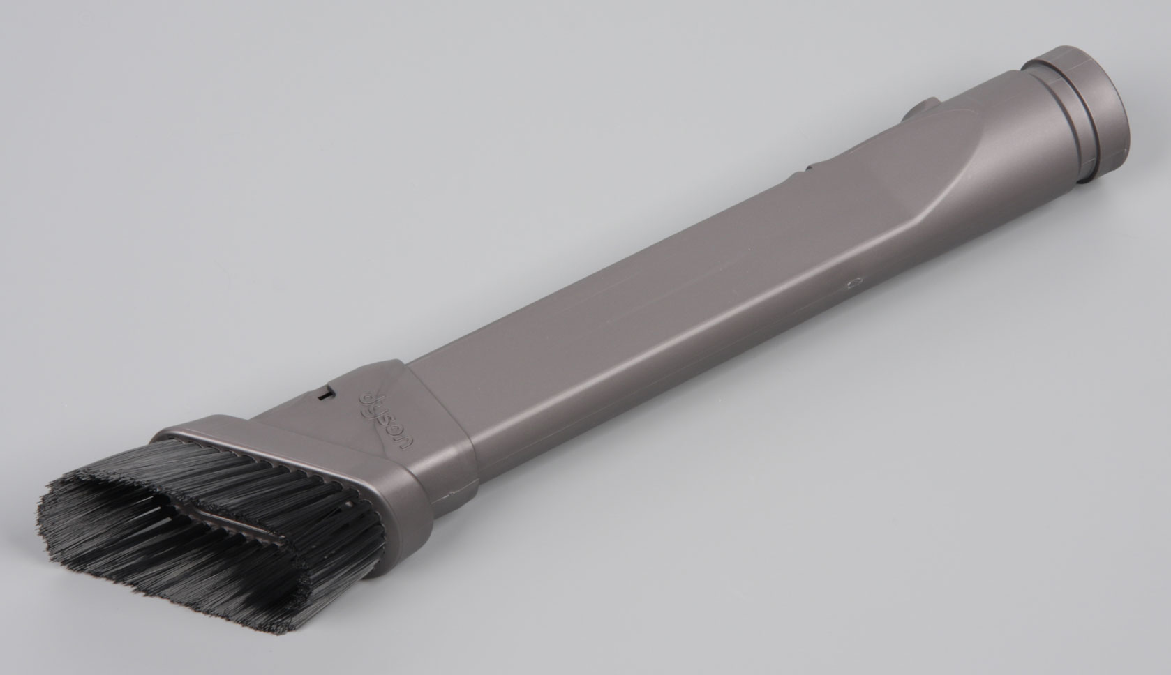 Носик насадки достаточно длинный, чтобы забираться в потаенные места накопления пыли, и с рядом отверстий на боковой поверхности, помогающих сохранять необходимый для работы циклонов и охлаждения мотора поток воздуха при полном перекрытии входного отверстия насадки.