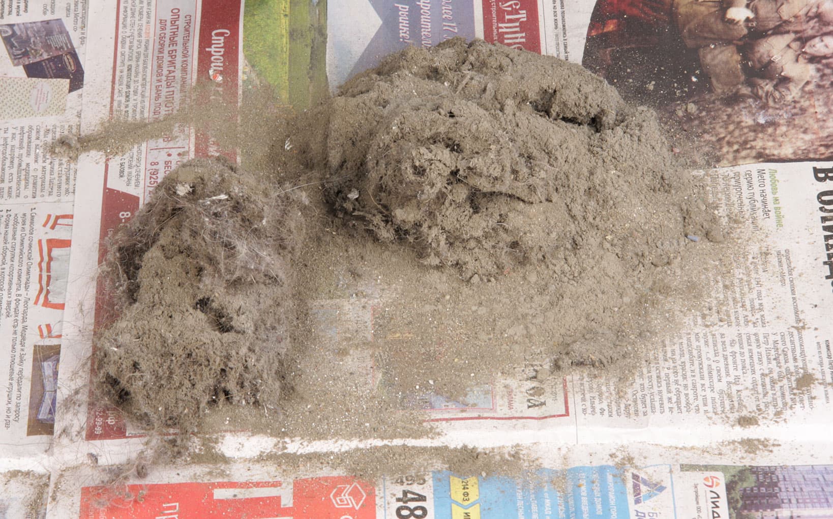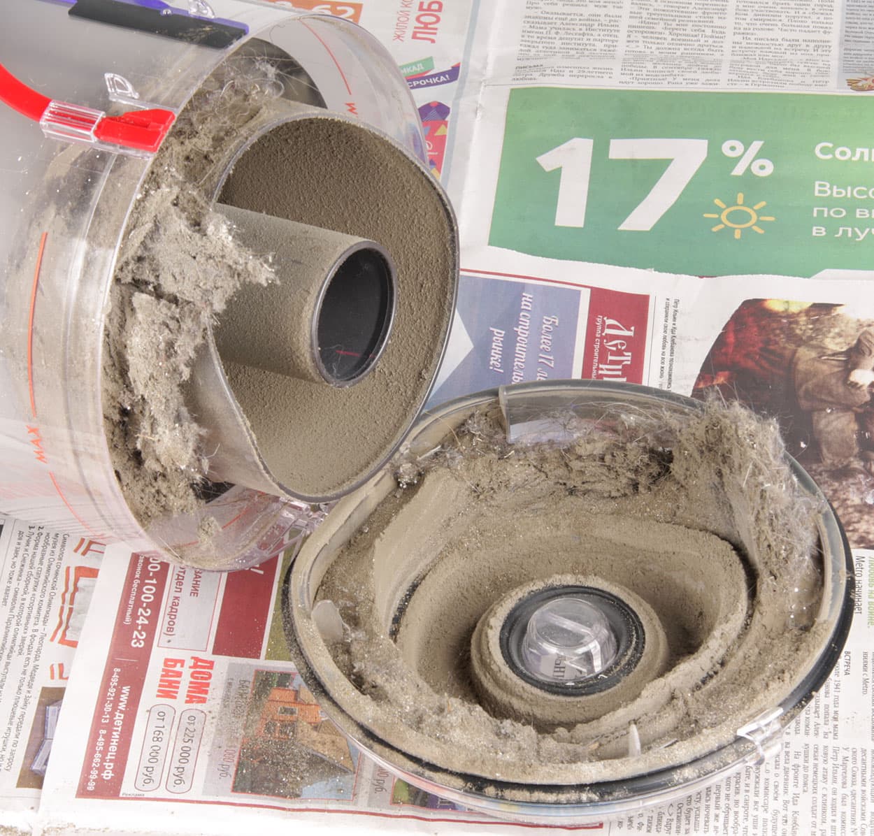 Какое-то количество мелкой пыли задержалось внутри блока с циклонами