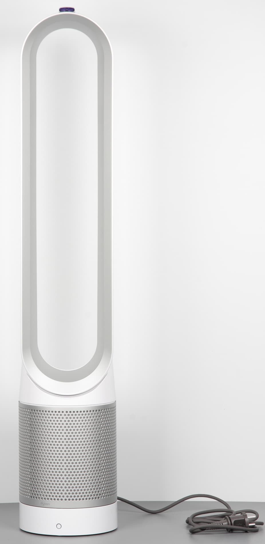К электрической сети устройство подключается кабелем питания длиной 1,8 м с евровилкой на конце. Кабель имеет среднюю жесткость. Отметим, что на Dyson Pure Cool установлена гарантия в два года. Изготовлен побывавший у нас на тестировании экземпляр в Малайзии.