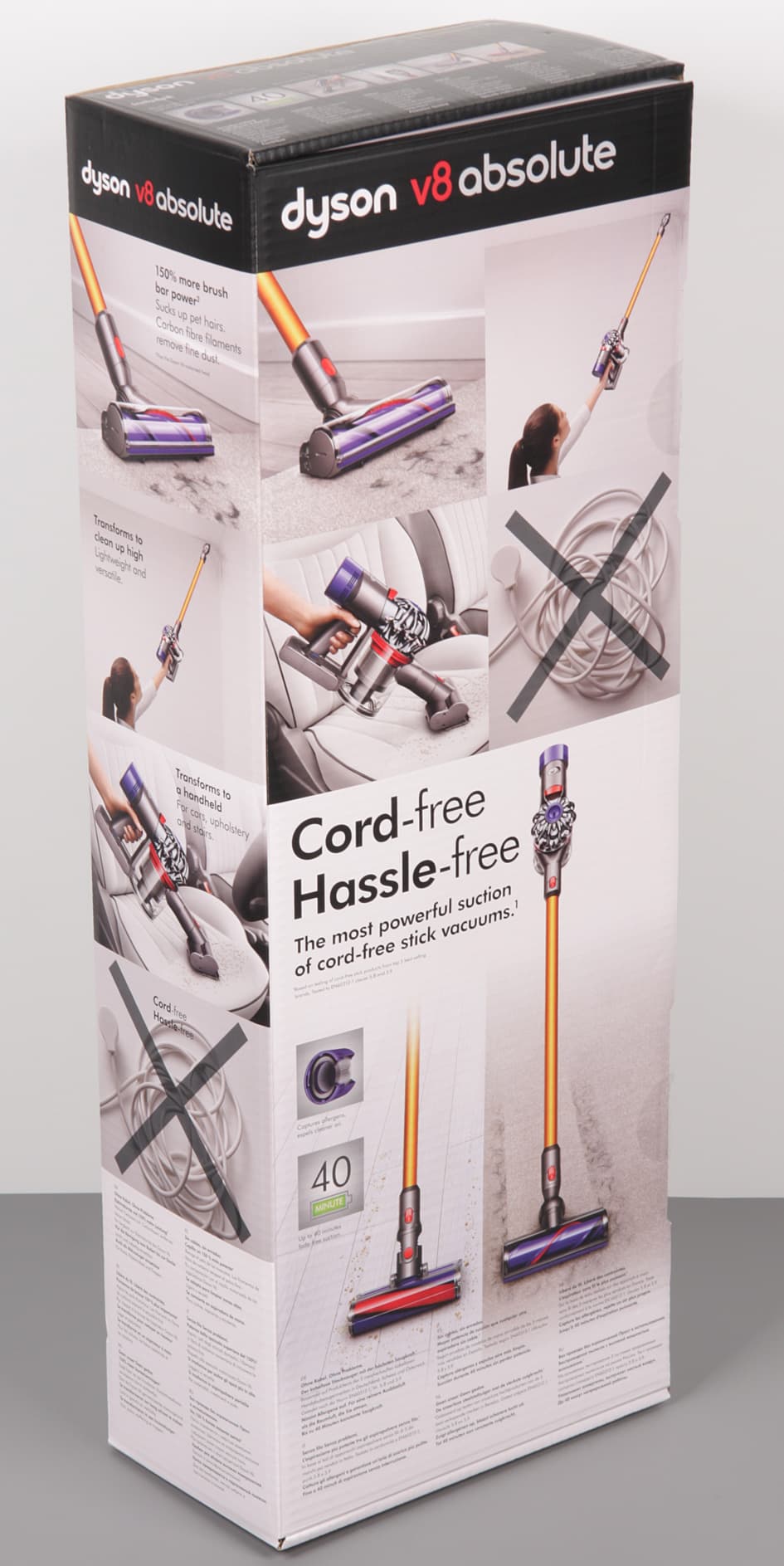 Легкий, компактный и мощный пылесос Dyson V8 Absolute обязательно станет самым любимым пылесосом в доме. С ним уборка из хлопотного занятия, требующего много времени и подготовительной работы, превратится в неутомительный процесс с быстрым результатом. Этому способствует продуманная до мелочей конструкция самого пылесоса и комплектных аксессуаров. Например, в комплект поставки включен очень удобный настенный кронштейн, который не просто позволяет заряжать пылесос, а также хранить его и набор насадок, но и, что не менее важно, делает Dyson V8 максимально доступным для экстренной уборки.