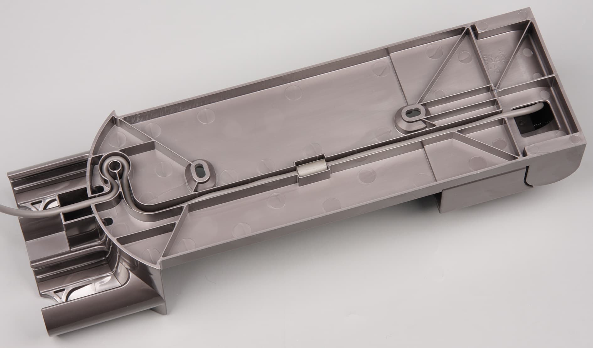Внутрь трубы вставлен вкладыш из пластика, образующий гладкий и ровный канал для прохода воздуха. На торцах трубы можно разглядеть разъемы, обеспечивающие подключение электрических приводов щеток к источнику питания.
