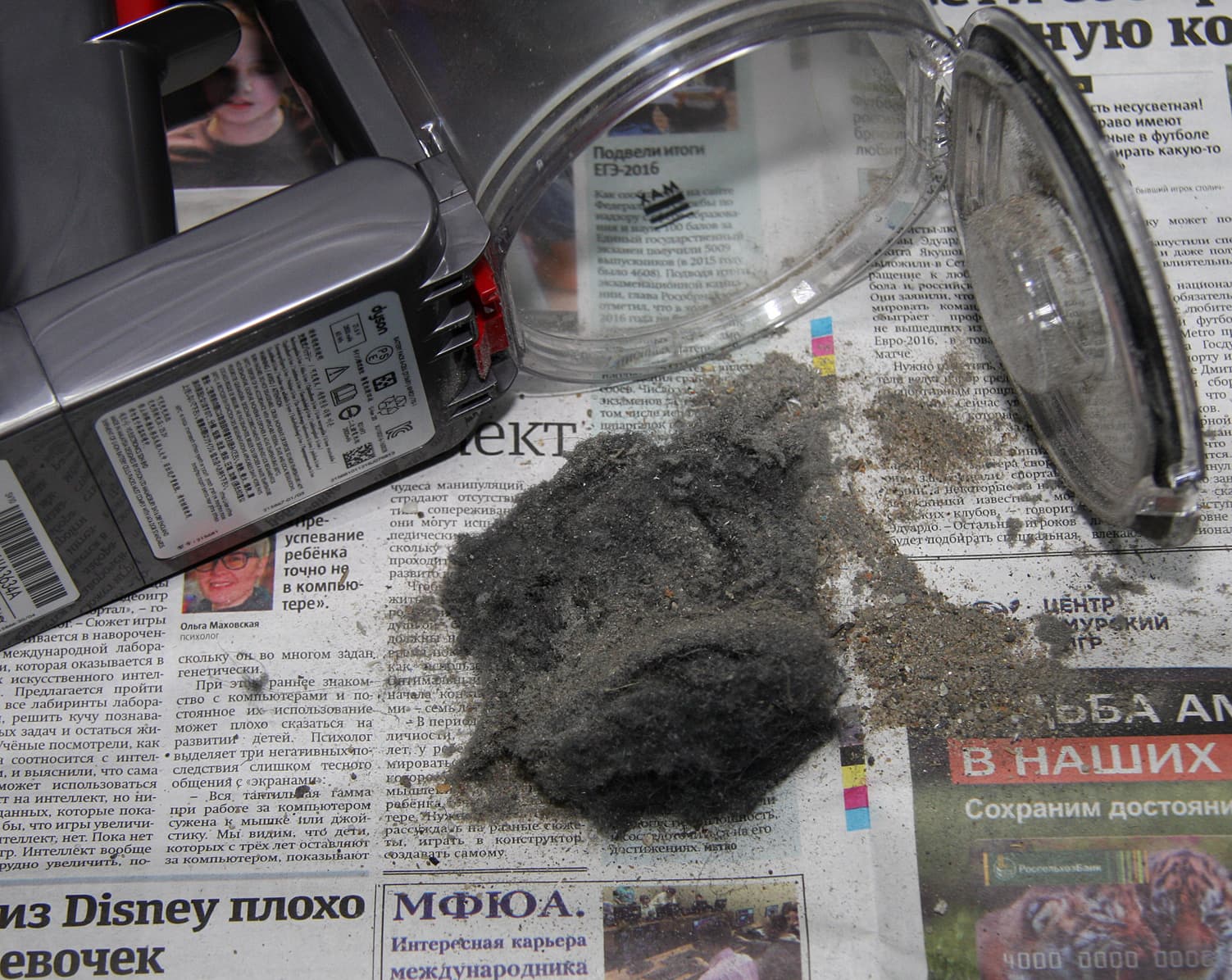 Опорожнять пылесборник очень удобно и контакт с пылью в большинстве случаев можно свести к минимуму, так как можно погрузить пылесос в пакет для мусора или ведро, аккуратно вытянуть вверх блок циклонов до момента отщелкивания крышки и слегка постучать — все вывалится из основной емкости пылесборника и из циклонов тонкой очистки.
