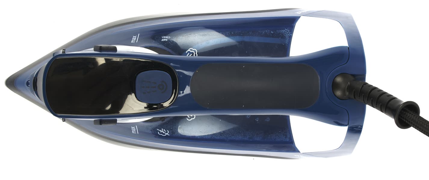 Из недочетов мы отметили разве что отсутствие передней подсветки, что сейчас является частой дополнительной функцией у утюгов и действительно облегчает глажение темных тканей. Также нам доставил небольшой дискомфорт шнур, выходящий прямо из ручки утюга. Его расположение мешает при разглаживании вещей, так как шнур, упираясь в запястье длительное время, может вызвать болезненные ощущения. Длина шнура составляет 1,9 метра и это тоже нельзя назвать его преимуществом — она будет достаточна для большинства пользователей, но найдутся и те, кому такой провод будет короток при вертикальном отпаривании и удаленности розетки.