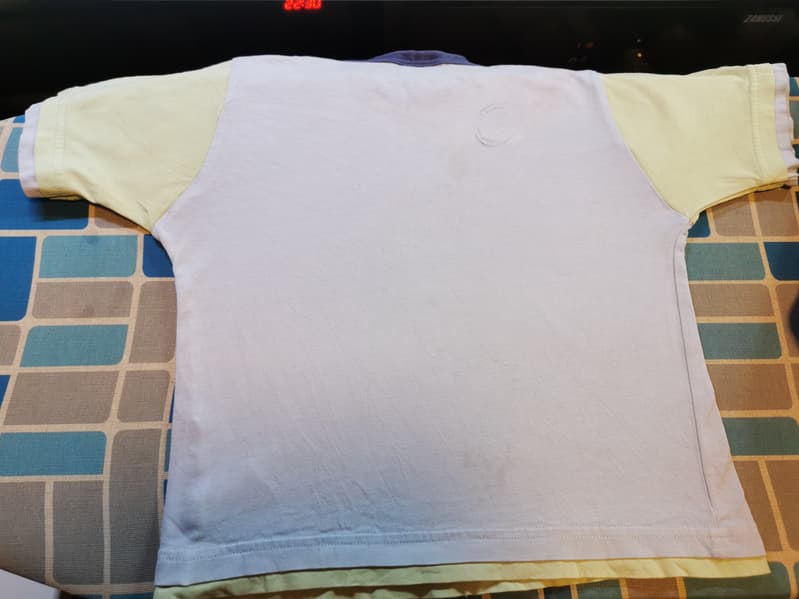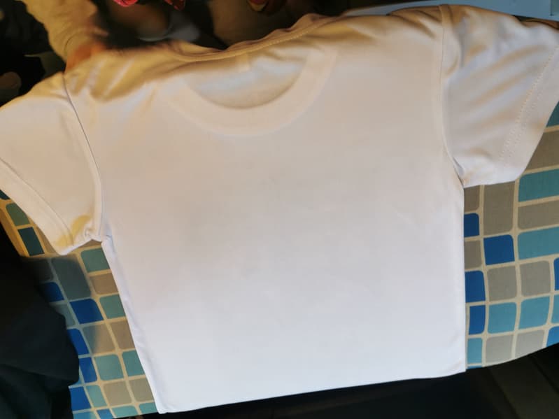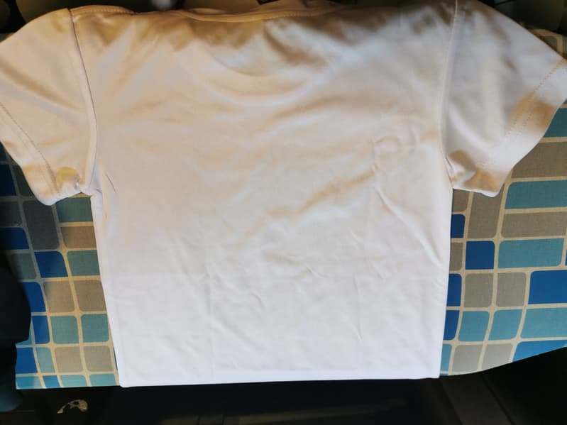 Для проверки шестого деликатного режима «Полиэстер», мы взяли футболку с небольшим количеством складок из соответствующего материала.