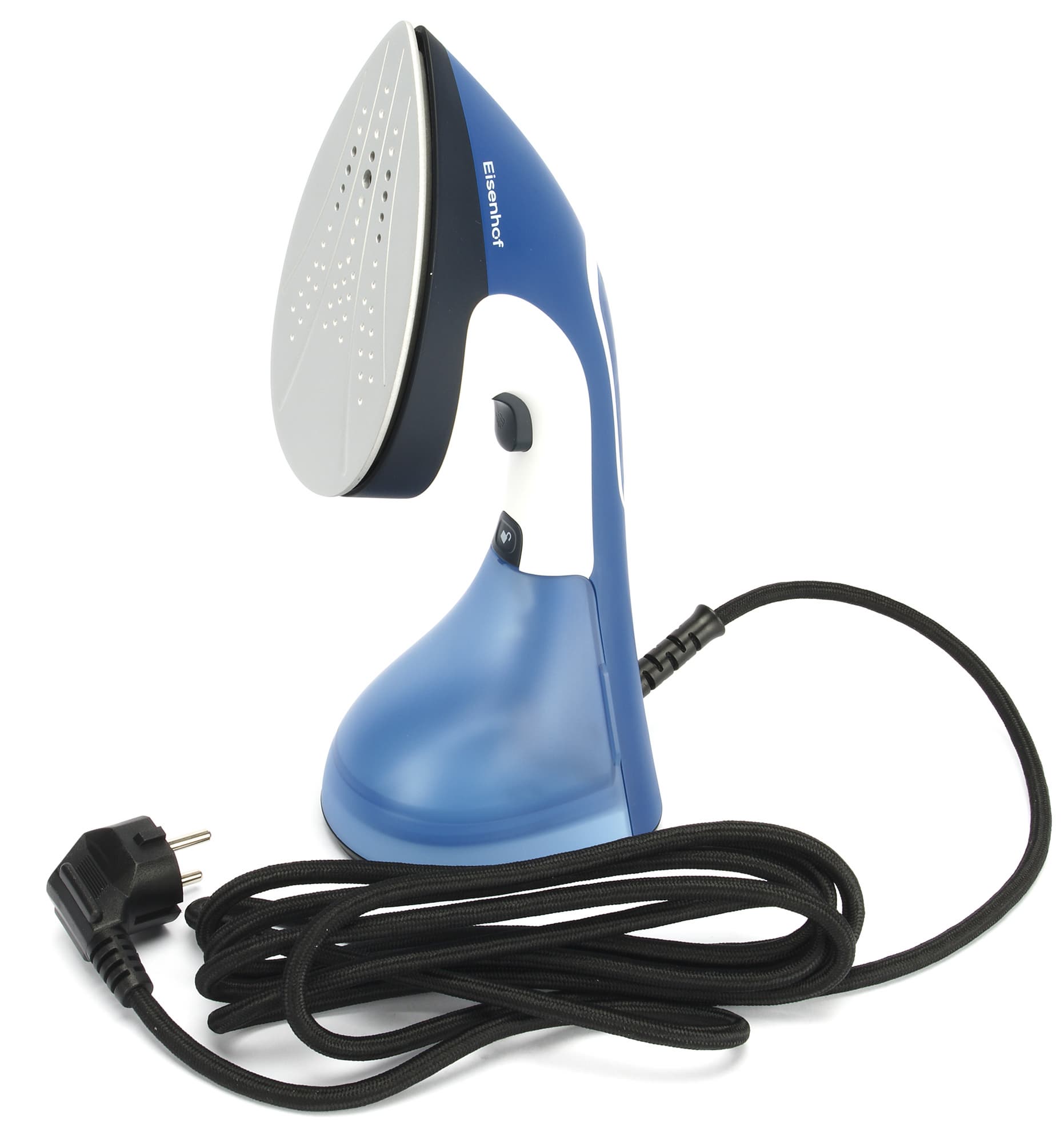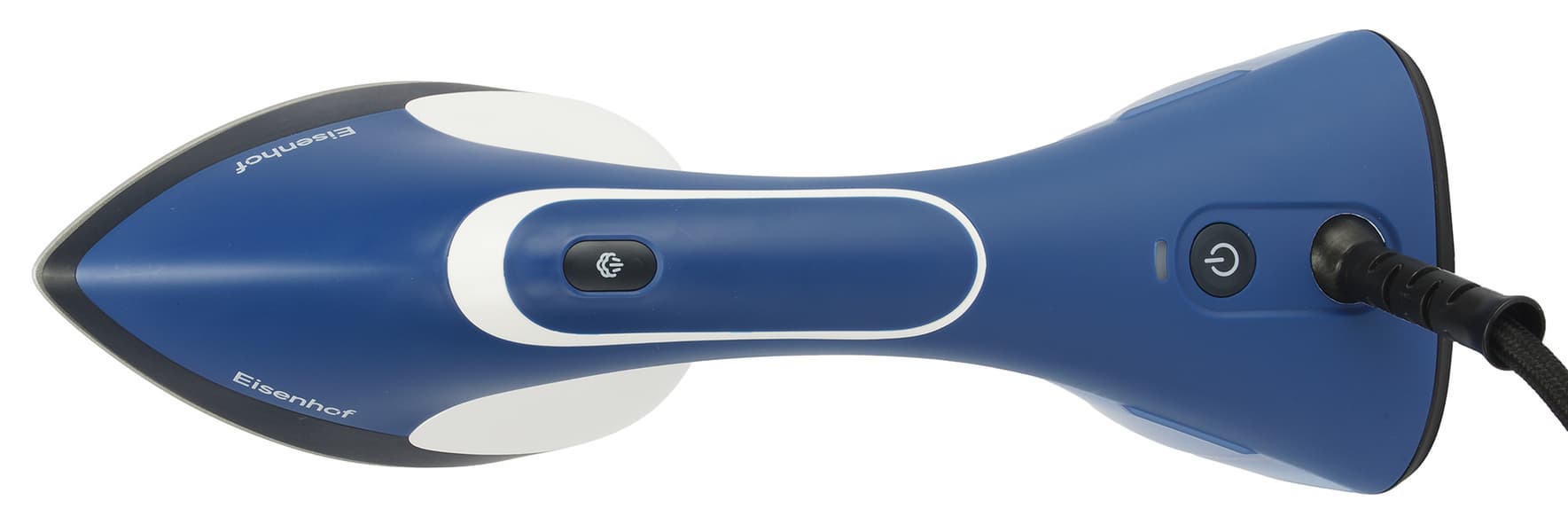 Компактный корпус Eisenhof HS200 выполнен из матового пластика преимущественно синего цвета, с белыми и черными вставками. Отпариватель симпатичен внешне и приятен тактильно.
