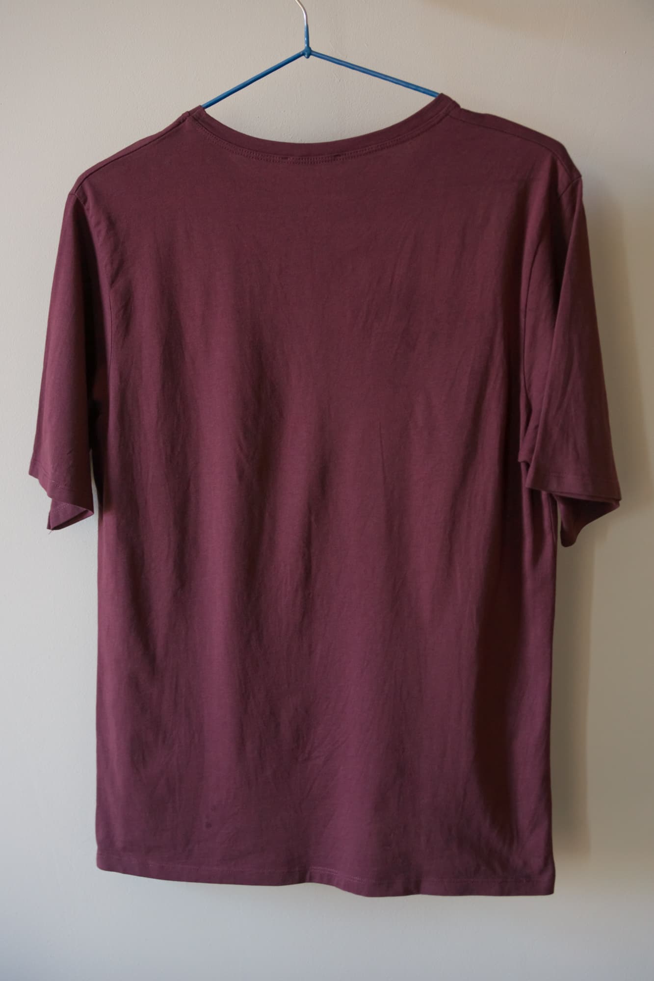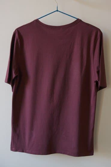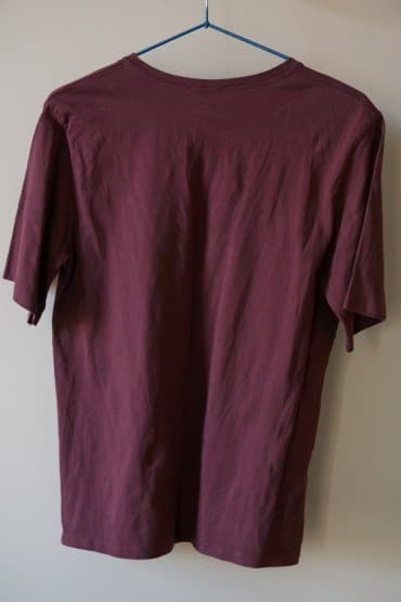 Мятую футболку мы для начала обработали в вертикальном положении на вешалке, вплотную прижимая утюжок к ткани, а свободной рукой натягивая нижний край. В целом, мы получили неплохой результат, но складки местами все еще оставались слишком заметными.