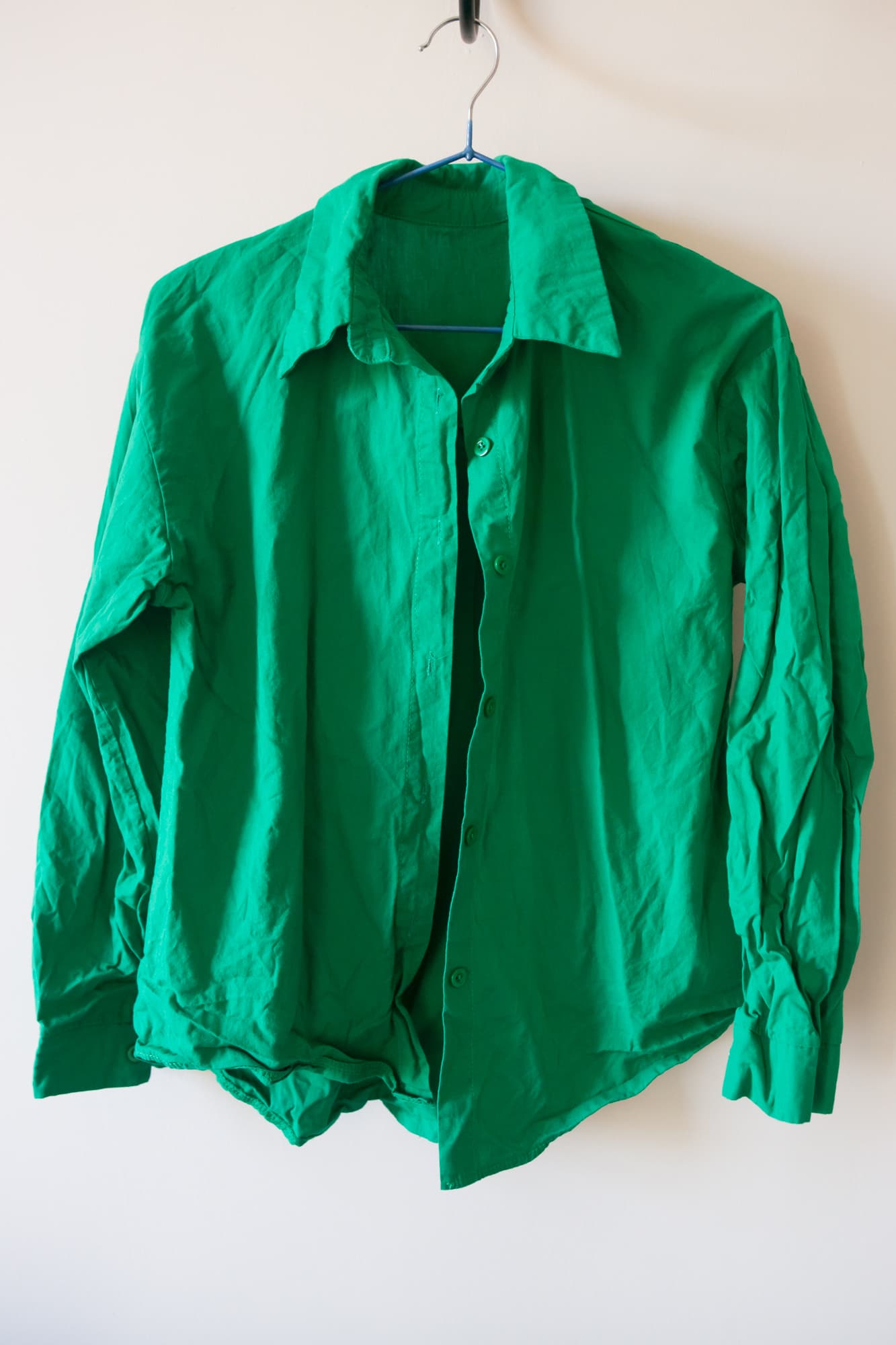 Теперь задание со звездочкой. Рубашка из не самой плотной хлопчатобумажной ткани была очень сильно измята после стирки и в таком виде дожидалась своего часа около недели. В этот тесте мы проверяли предел возможностей отпаривателя.