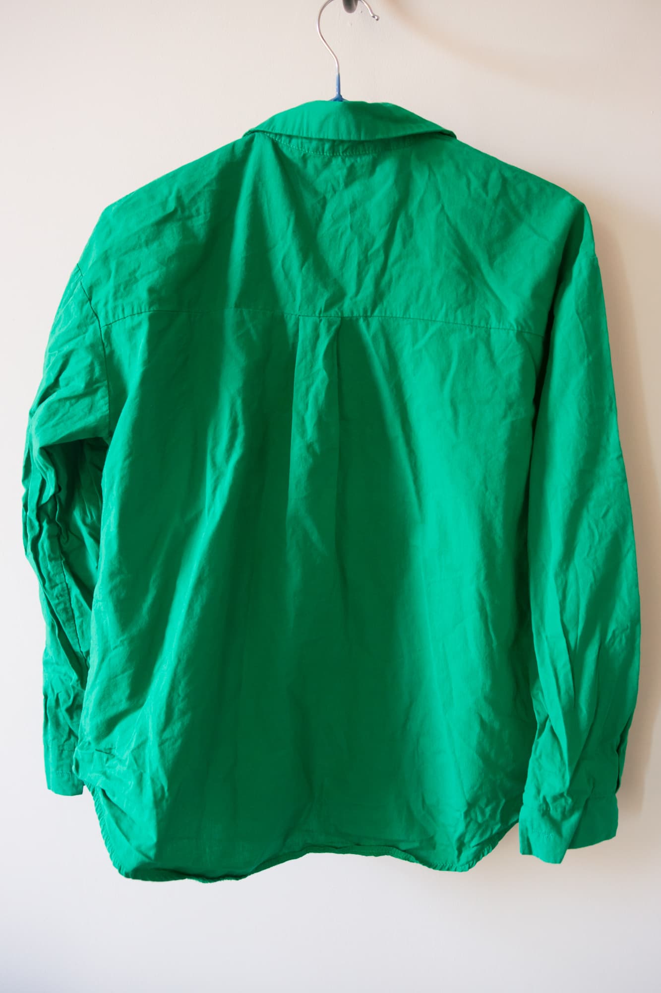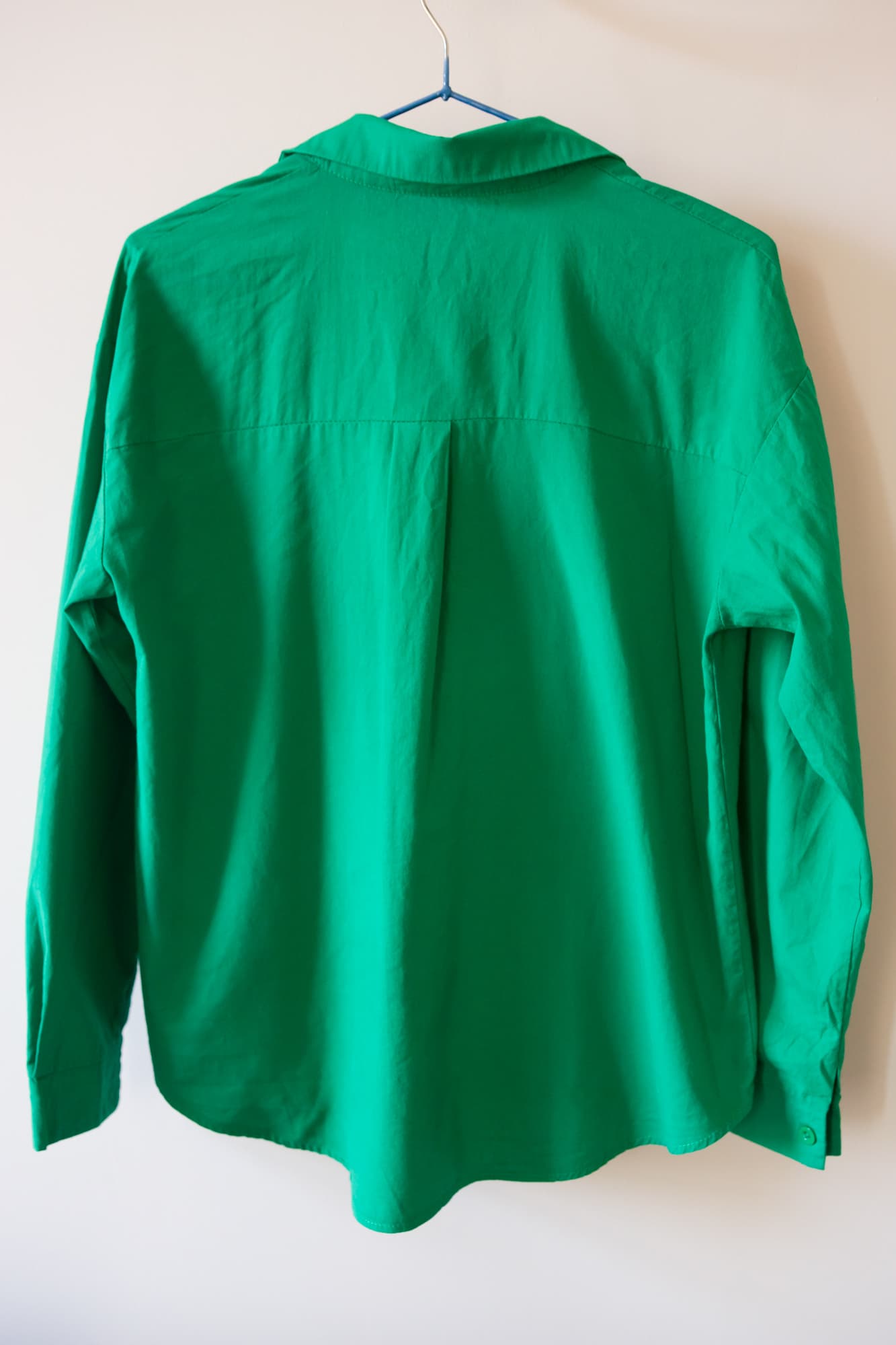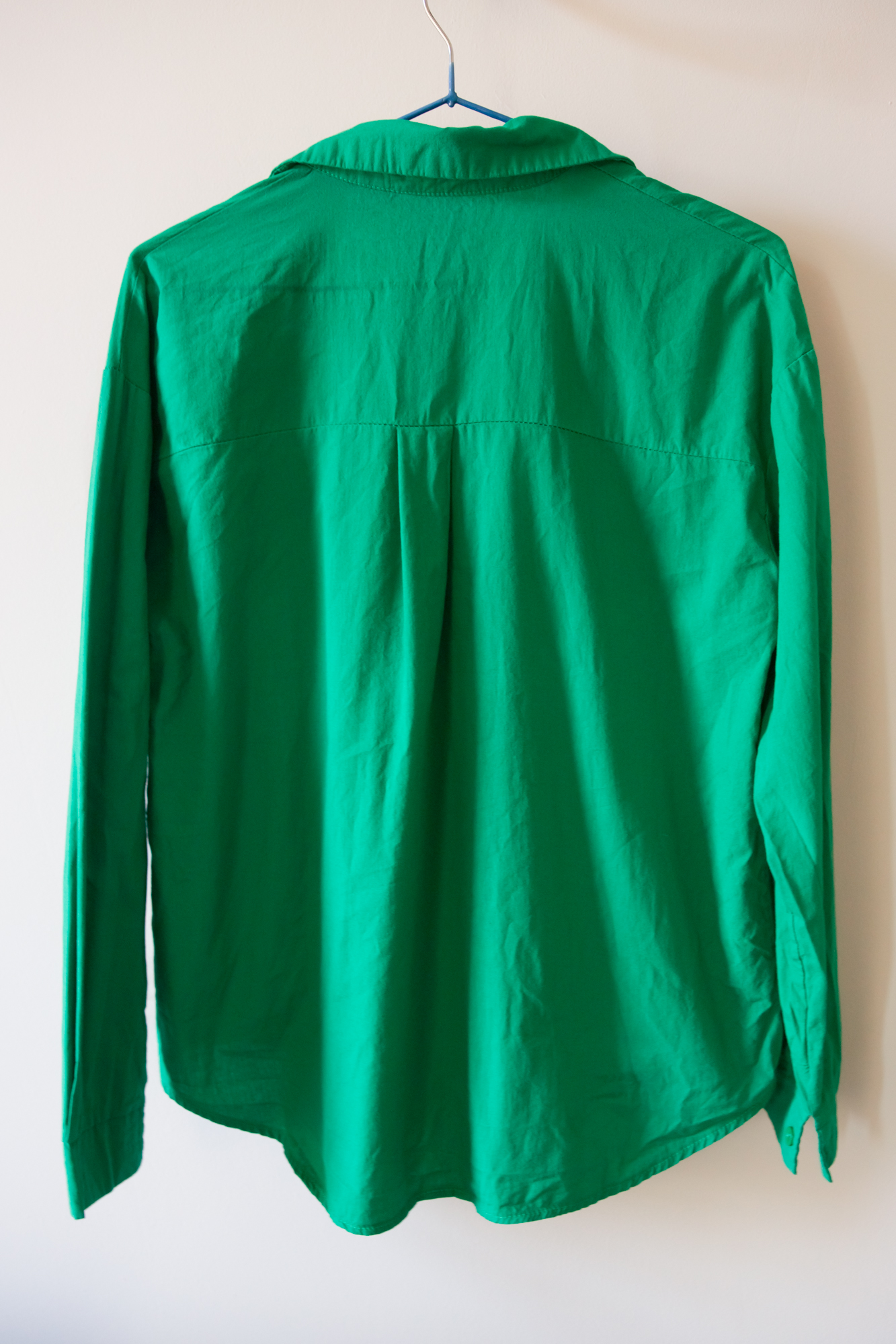 Сначала отпаривали рубашку вертикально. Всего за несколько минут изделие было обработано с двух сторон. Для ручного отпаривателя результат неплохой, но полностью разглаженной ткань назвать было нельзя.