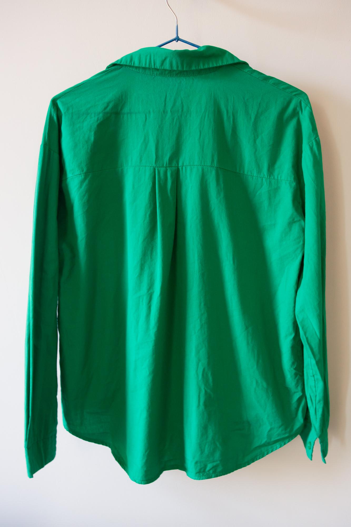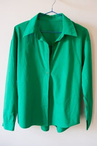 Мы переместили рубашку на гладильную доску и продолжили отпаривание в горизонтальном положении. Теперь, когда утюг прижимался к материалу вплотную с силой, при постоянной подаче пара и регулярной активацией парового удара у нас получилось значительно улучшить внешний вид рубашки.