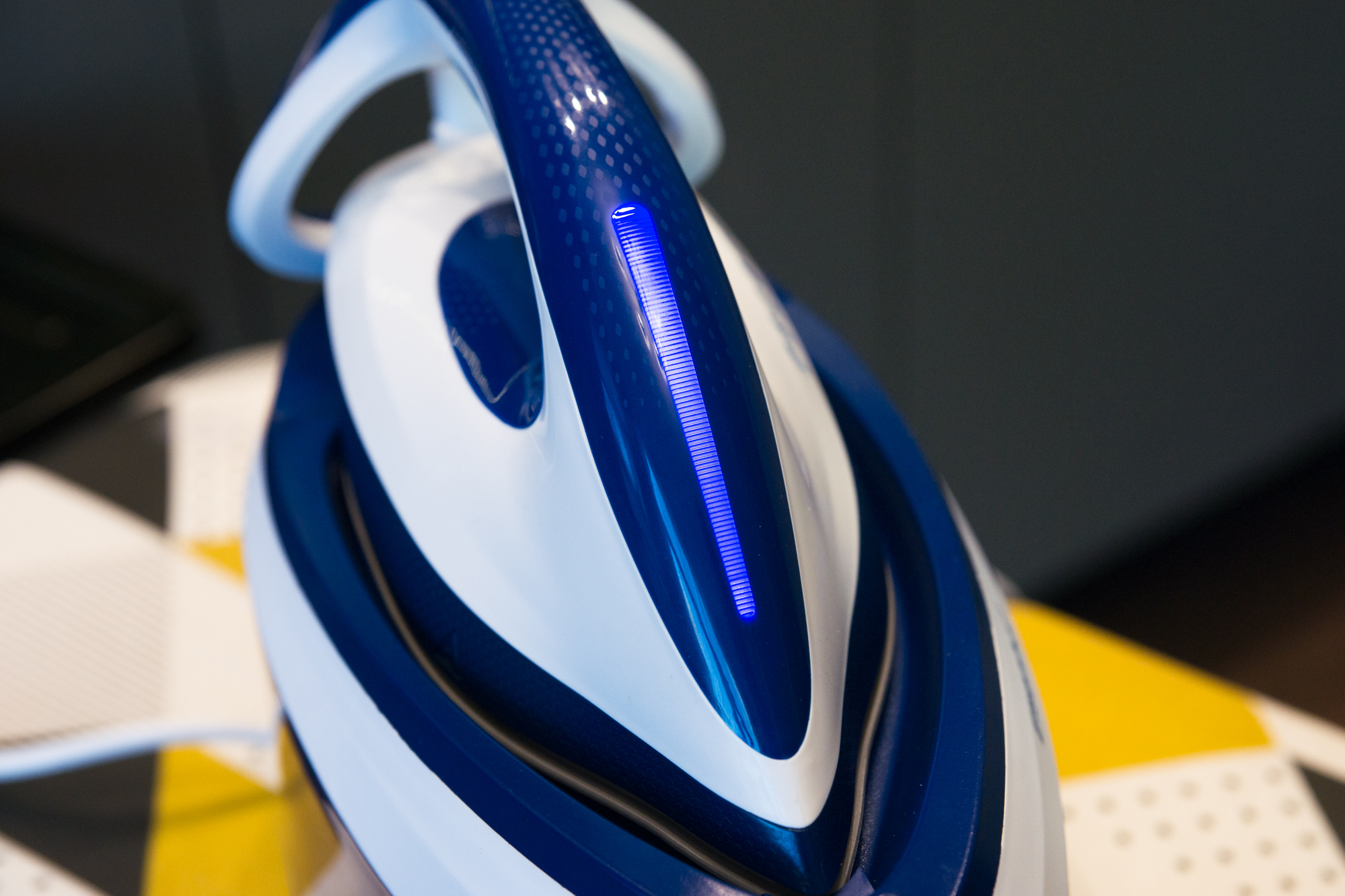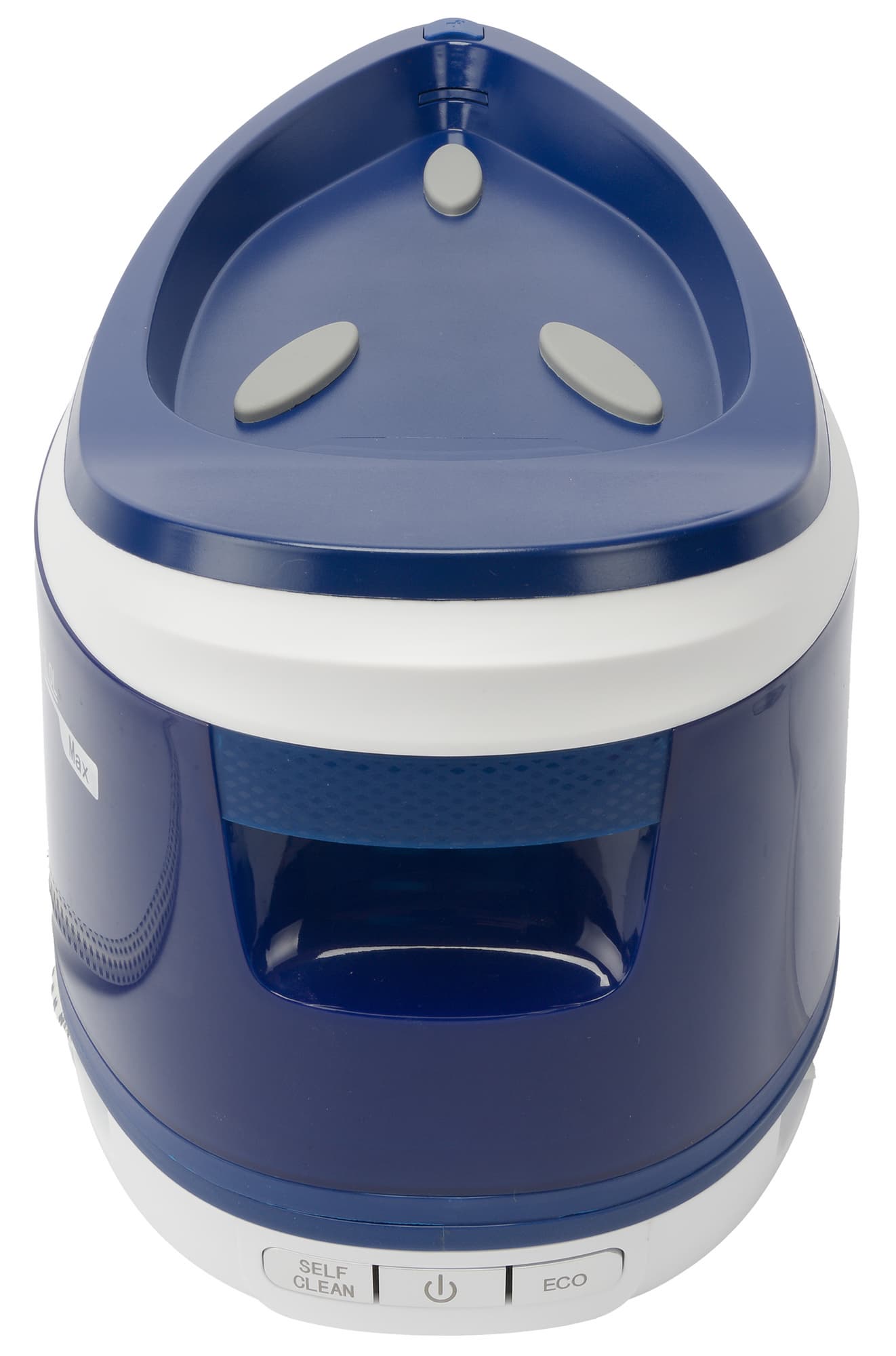Корпус прибора изготовлен из матового пластика синего и белого цветов, местами дополненного вставками с глянцевым покрытием. Симпатичный парогенератор довольно крупен, но благодаря обтекаемым формам громоздко не выглядит.