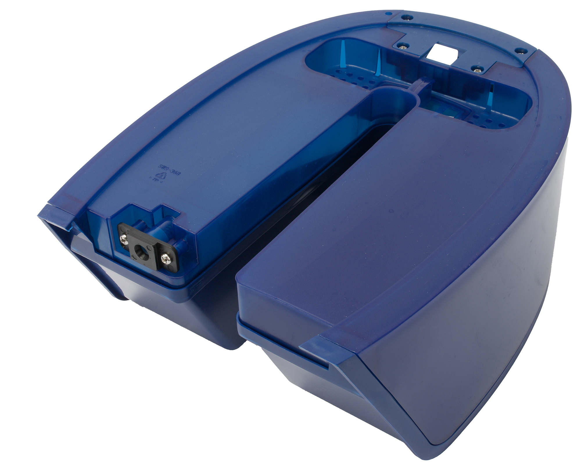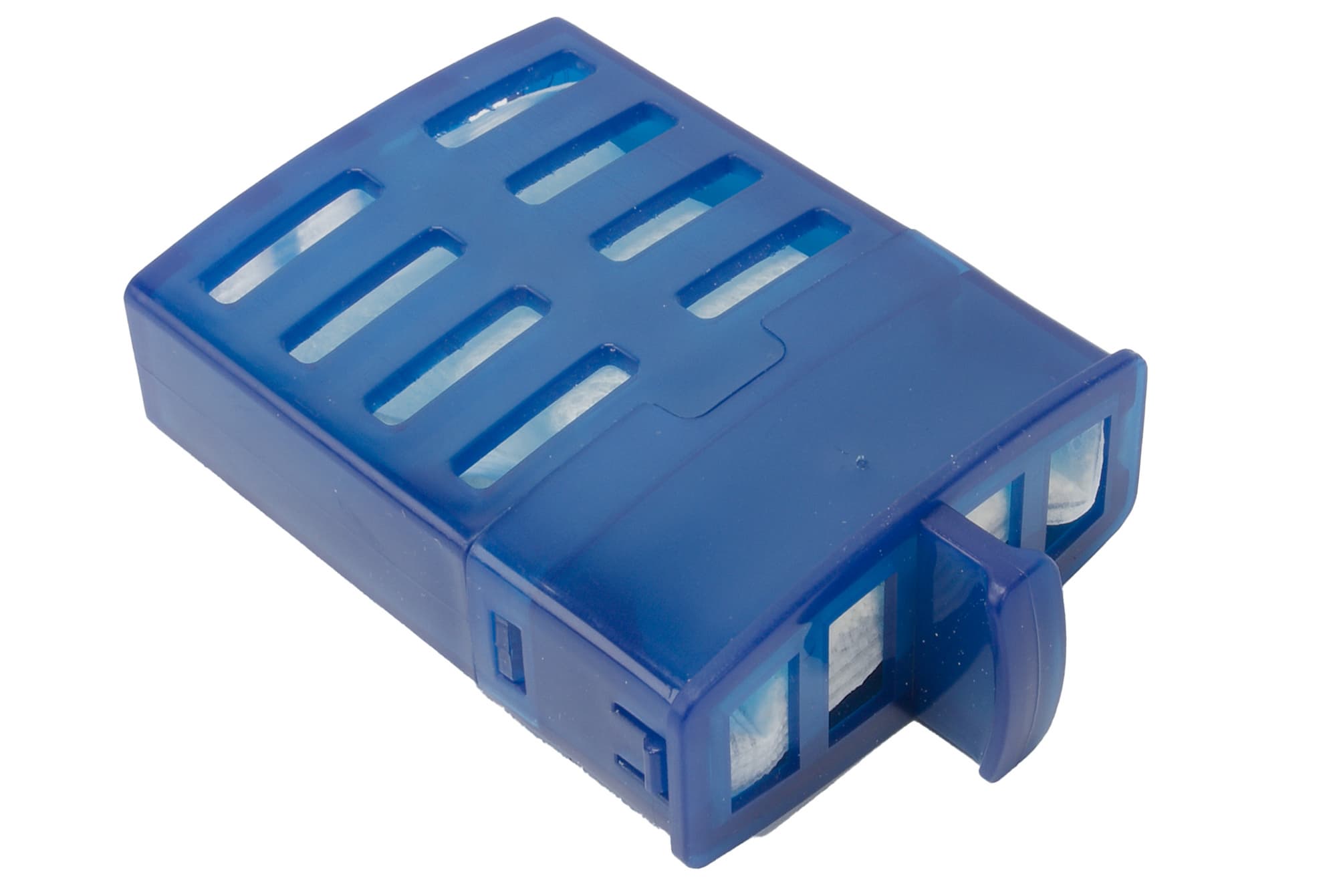 Вода заливается в емкость через широкое прямоугольное отверстие, после чего в него устанавливается картридж с ионообменной смолой.