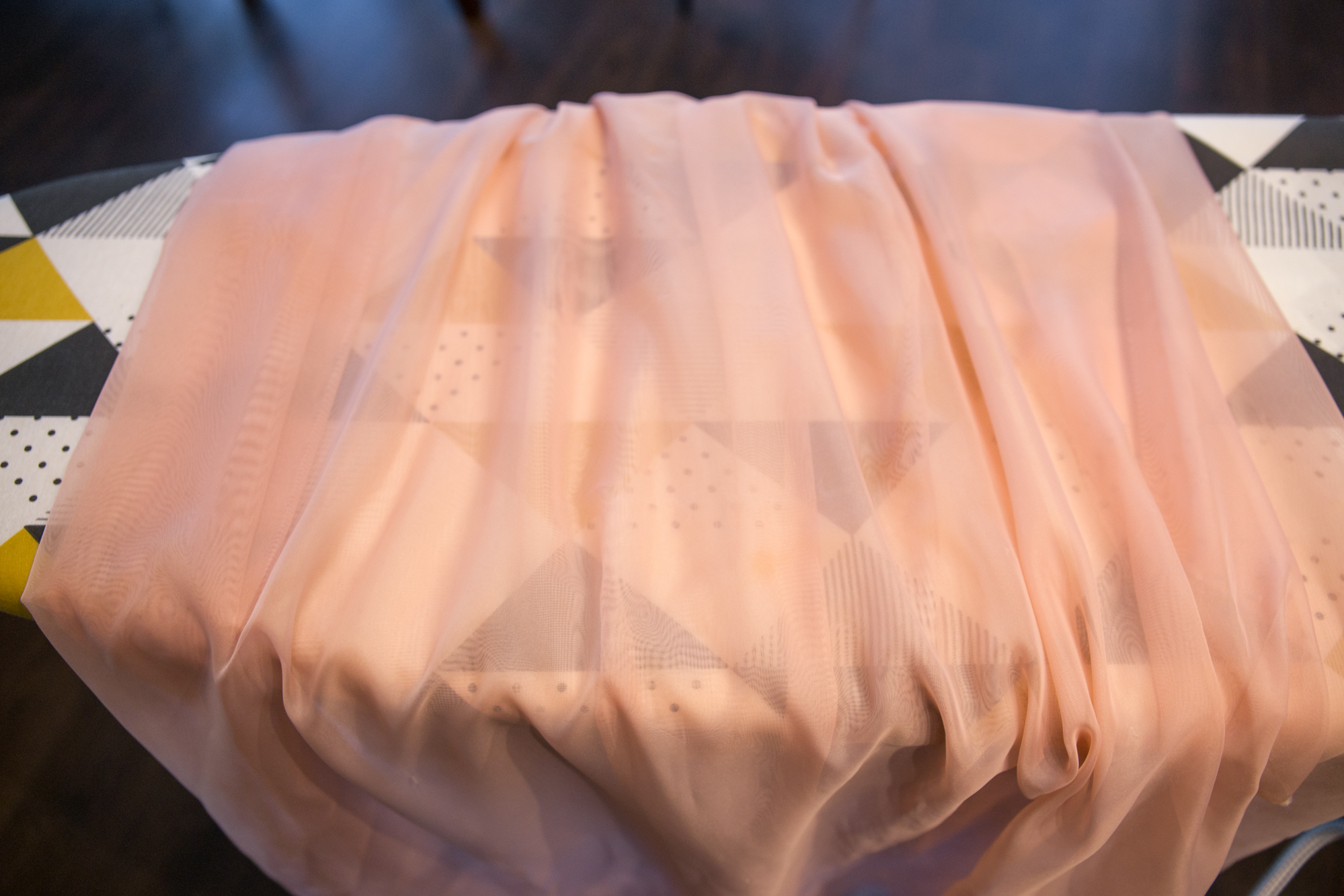 Напоследок мы опробовали парогенератор в работе с деликатной тканью. Органза не любит чрезмерно мощную температуру и требовательна к идеальной гладкости подошвы утюга — оставить зацепки при глажке такого материала проще простого.