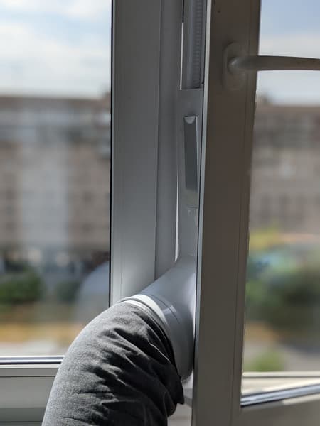 Трубу воздуховода можно закрепить в оконном проеме традиционным способом, выведя ее в форточку или за приоткрытую раму, или же воспользовавшись слайдером. Мы испробовали оба метода и убедились, что разработанное производителем устройство значительно удобнее привычного вывода.