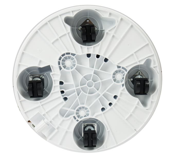 Кондиционер опирается на четыре мебельных колеса, поэтому перекатывать его по квартире легко и удобно.