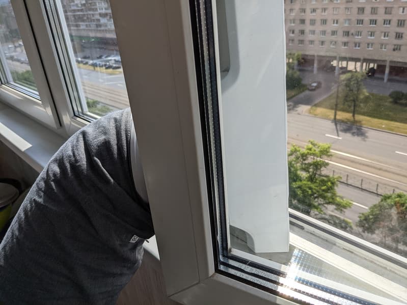 Удобнее всего размещать слайдер кондиционера в сдвижном окне — вертикальном или горизонтальном. При такой установке конструкция полностью перекрывает щель оконного проема, эффективно выводя теплый воздух наружу и не оставляет дополнительных щелей. К сожалению, окна такой конструкции не получили у нас заметного распространения, и мы тестировали кондиционер с традиционными, распашными рамами.