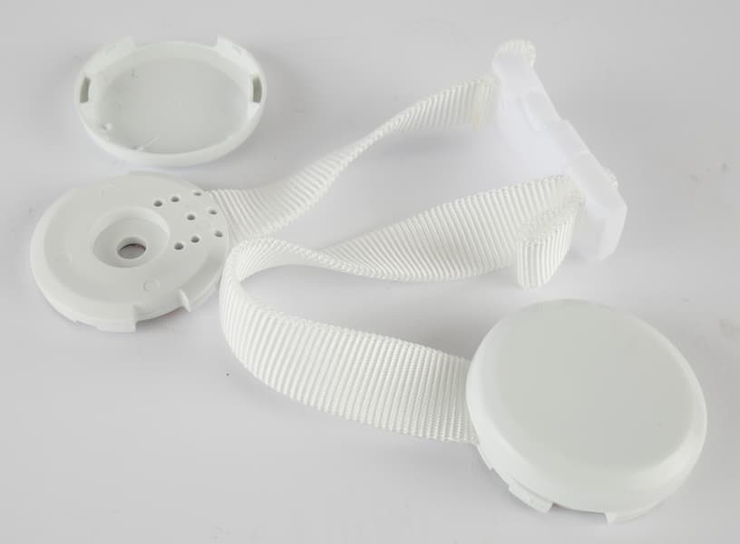 Чтобы распашное окно, в котором установлен слайдер воздухоотвода, не открывалось от ветра, в комплекте есть предохранительный ремешок, снабженный пряжкой-самосбросом. Приспособление крепится на раме с помощью прилагаемых шурупов, закрывающихся декоративными заглушками. Если же нет желания дырявить рамы, можно установить его на двусторонний скотч, наклеенный на установочных площадках.