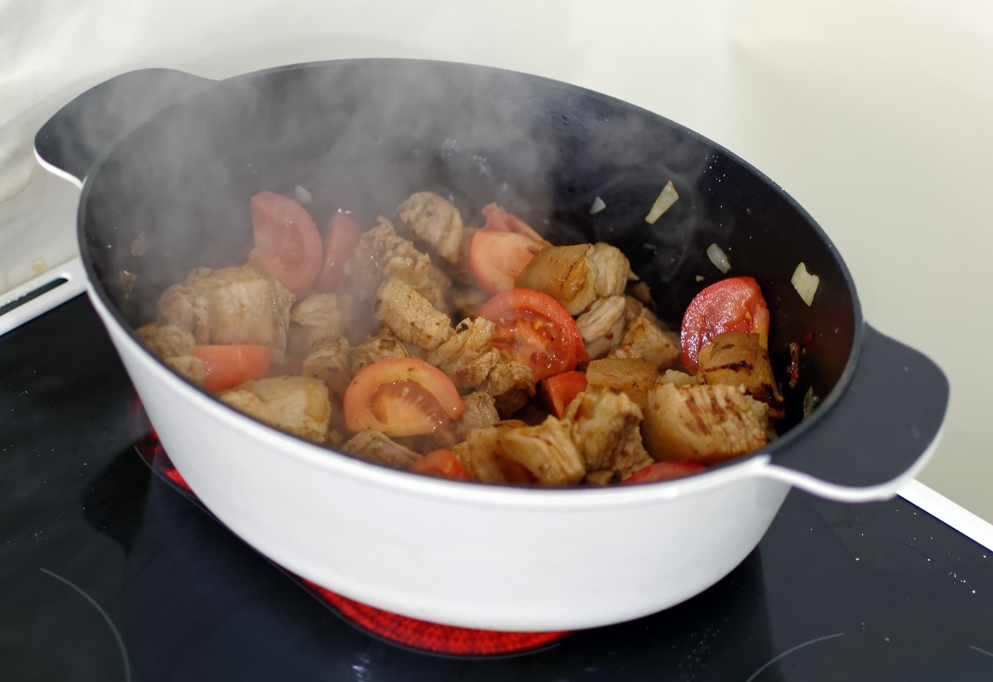 Это красивое, вкусное и очень простое блюдо. Традиционно оно готовится в казане, но мы воспользовались кастрюлей с плоским дном и вполне преуспели. Цель — базовый тест, наблюдаем за тем, насколько равномерно держится температура и насколько комфортно менять режимы в процессе приготовления.