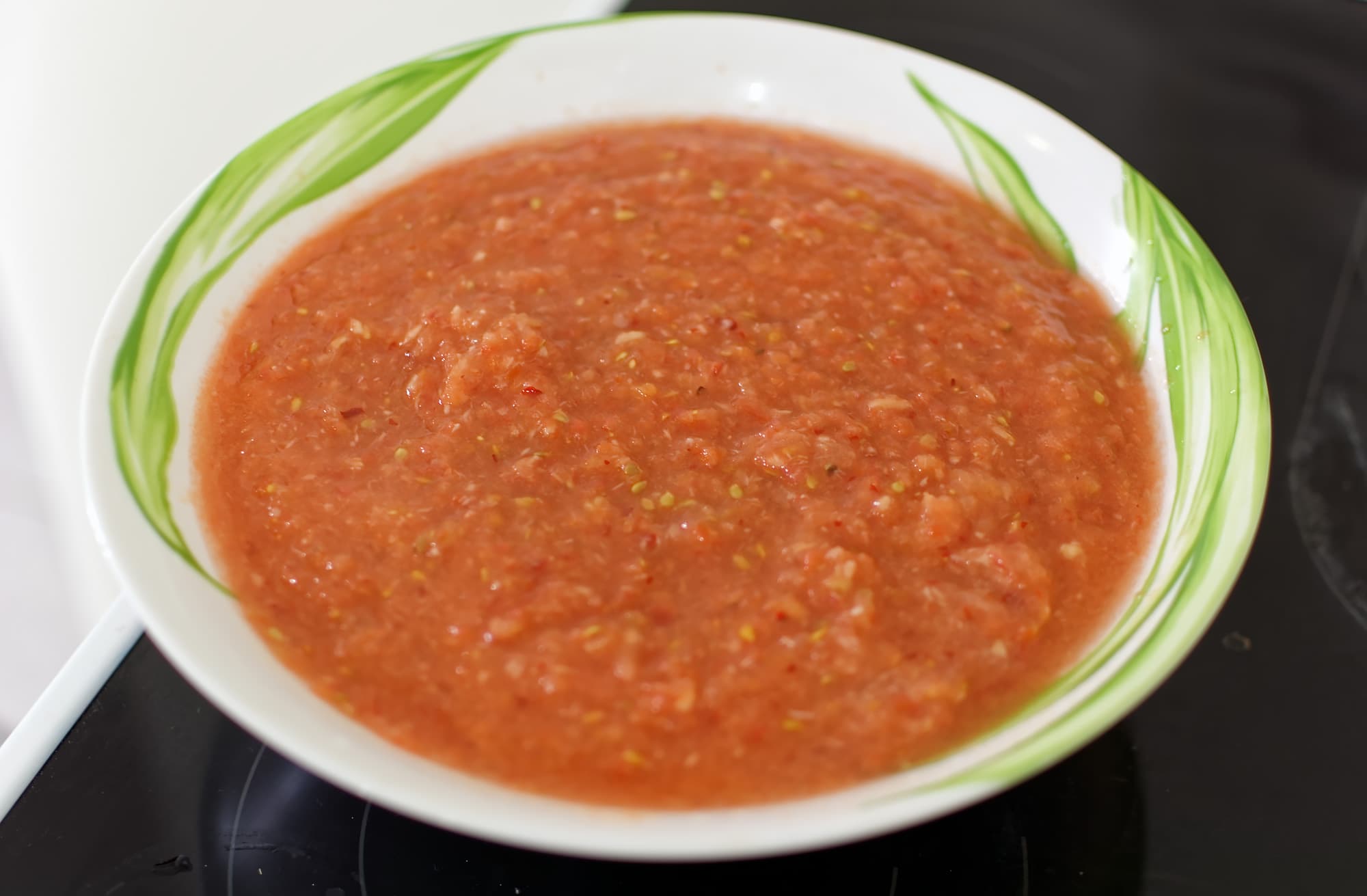 Название немного вызывающее, но из песни слов не выкинешь. Продолжаем консервировать. 2,5 кг помидоров пропустили через мясорубку вместе с корешком хрена, головкой очищенного чеснока и парой острых перцев. Добавили столовую ложку соли с горкой.