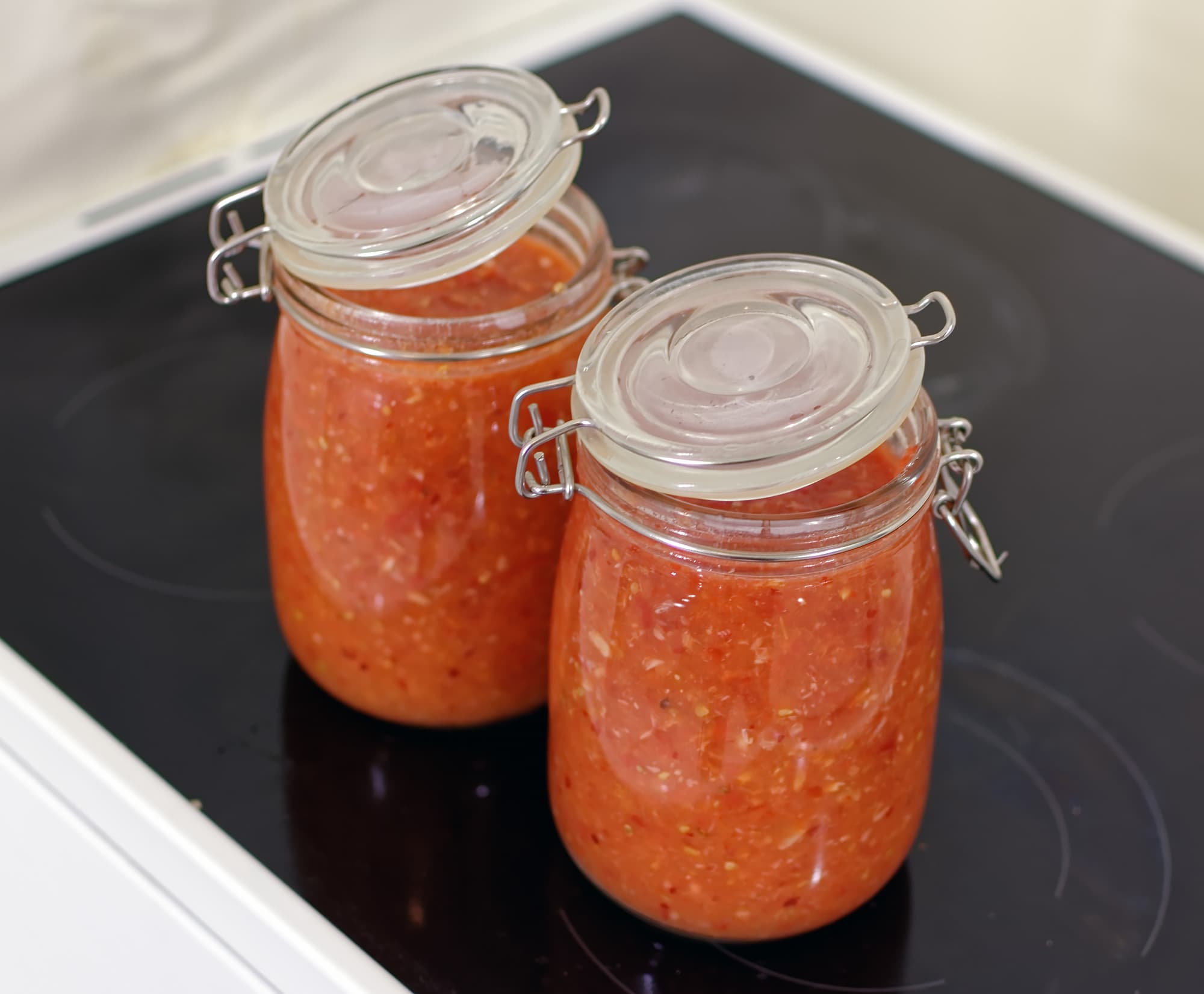 Результат — вкусный соус к чему угодно от шашлыков до пельменей. Пастеризация позволила хранить его вне холодильника, вкус через три недели оказался идеальным: помидоры не заквасились, а остались в «первоначальном вкусе».