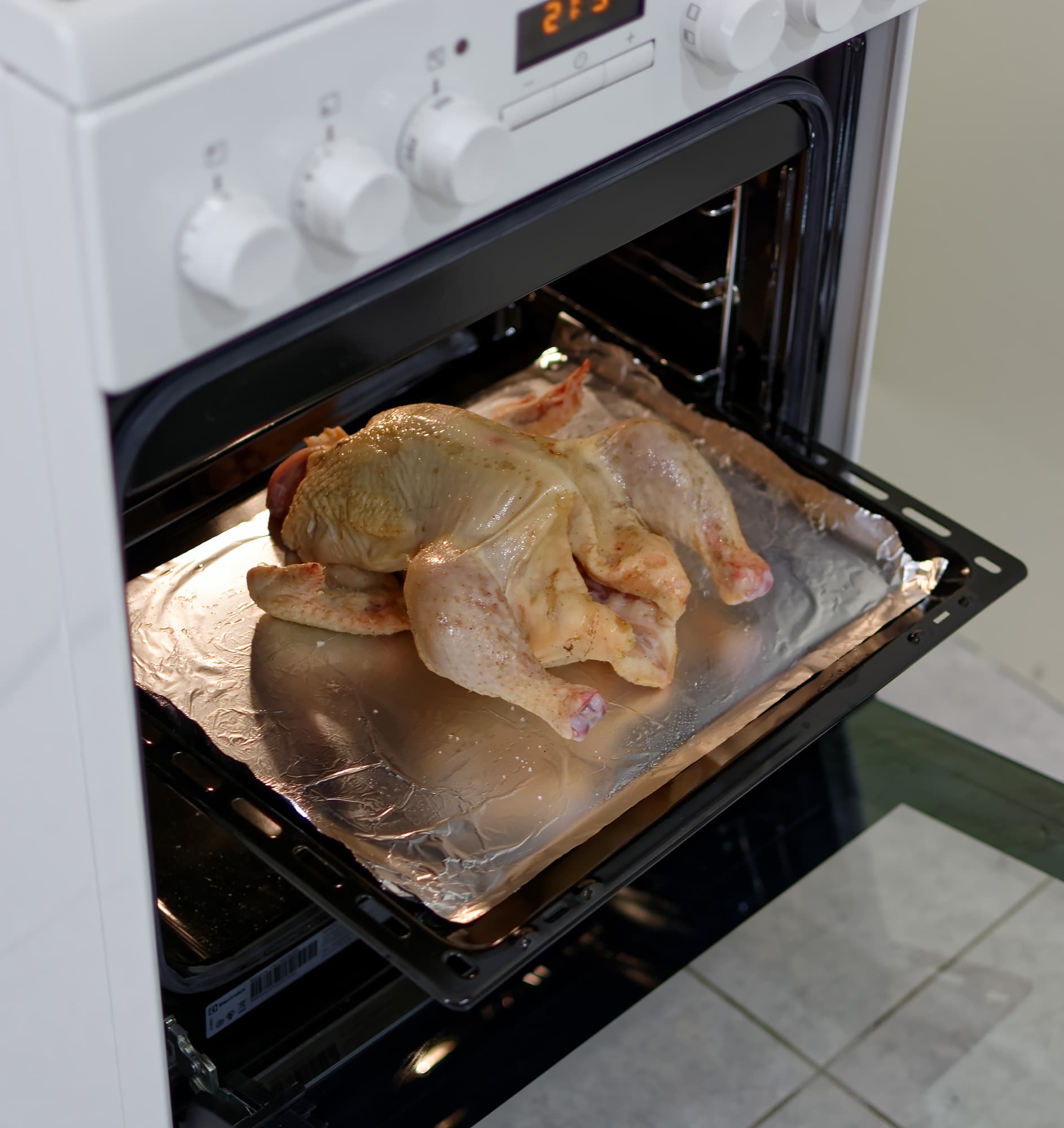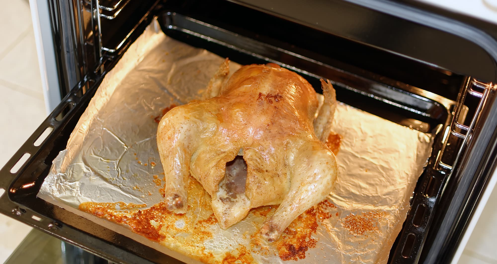 По идее, пар позволяет птице не потерять много влаги в начале приготовления, а достаточно высокая температура — зарумяниться в конце.