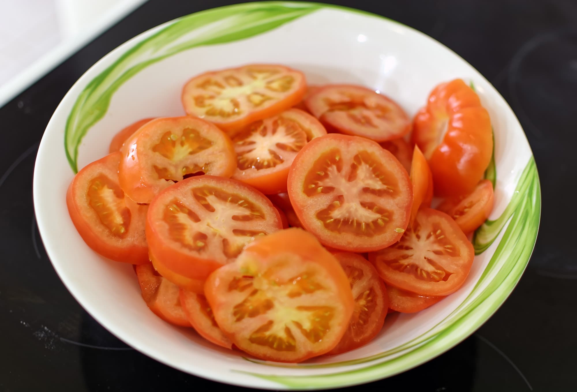 Нарезали помидоры кружочками.
