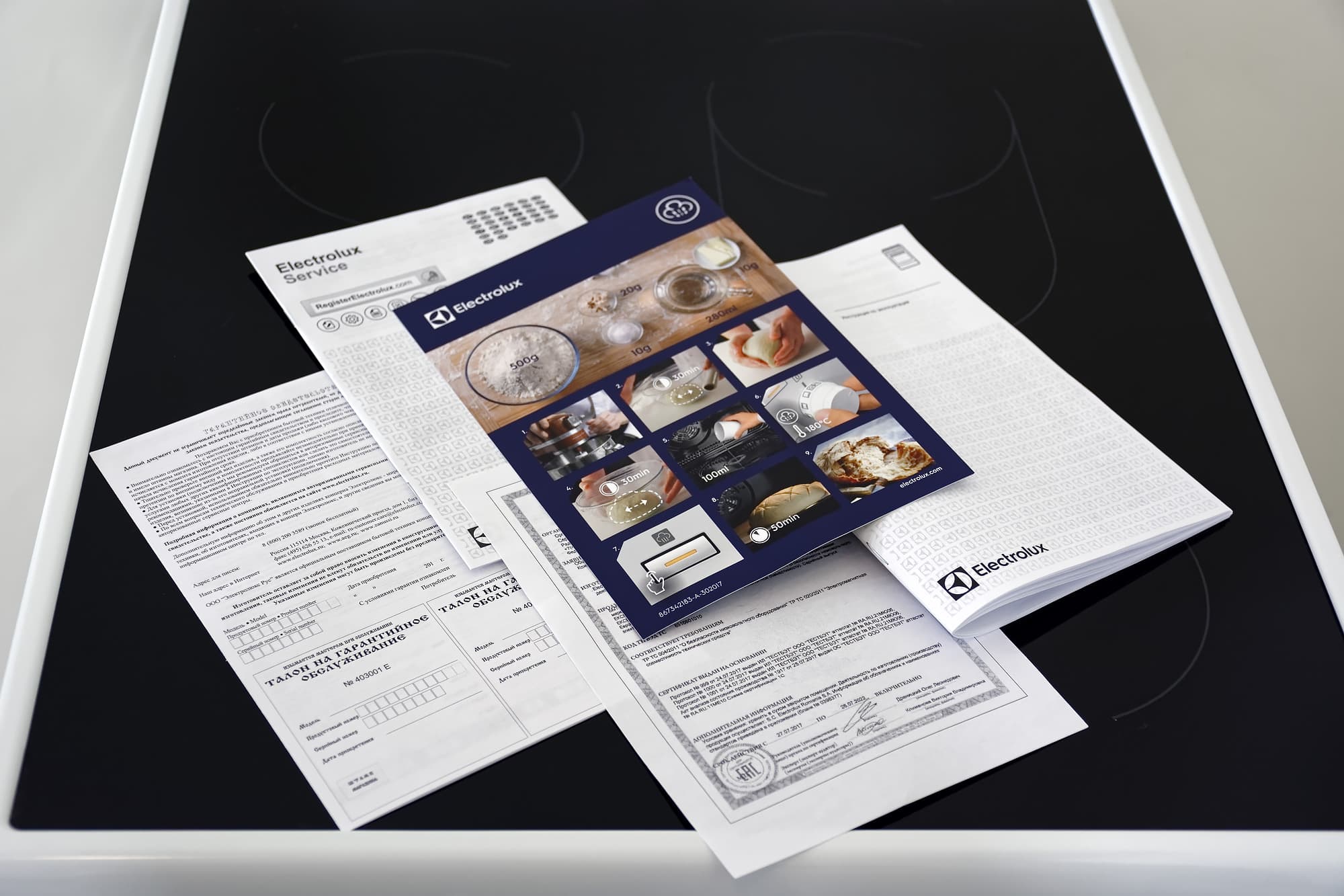 Приложенная к прибору 40-страничная черно-белая инструкция написана на русском языке. Помимо мер безопасности, описания управления и ухода за прибором, здесь содержатся сведения о подключении, о существующих режимах и целая кладезь советов. Советы касаются приготовления различных продуктов при самых разных режимах: гриль, конвекция, приготовление замороженных продуктов, дегидрация и консервирование.