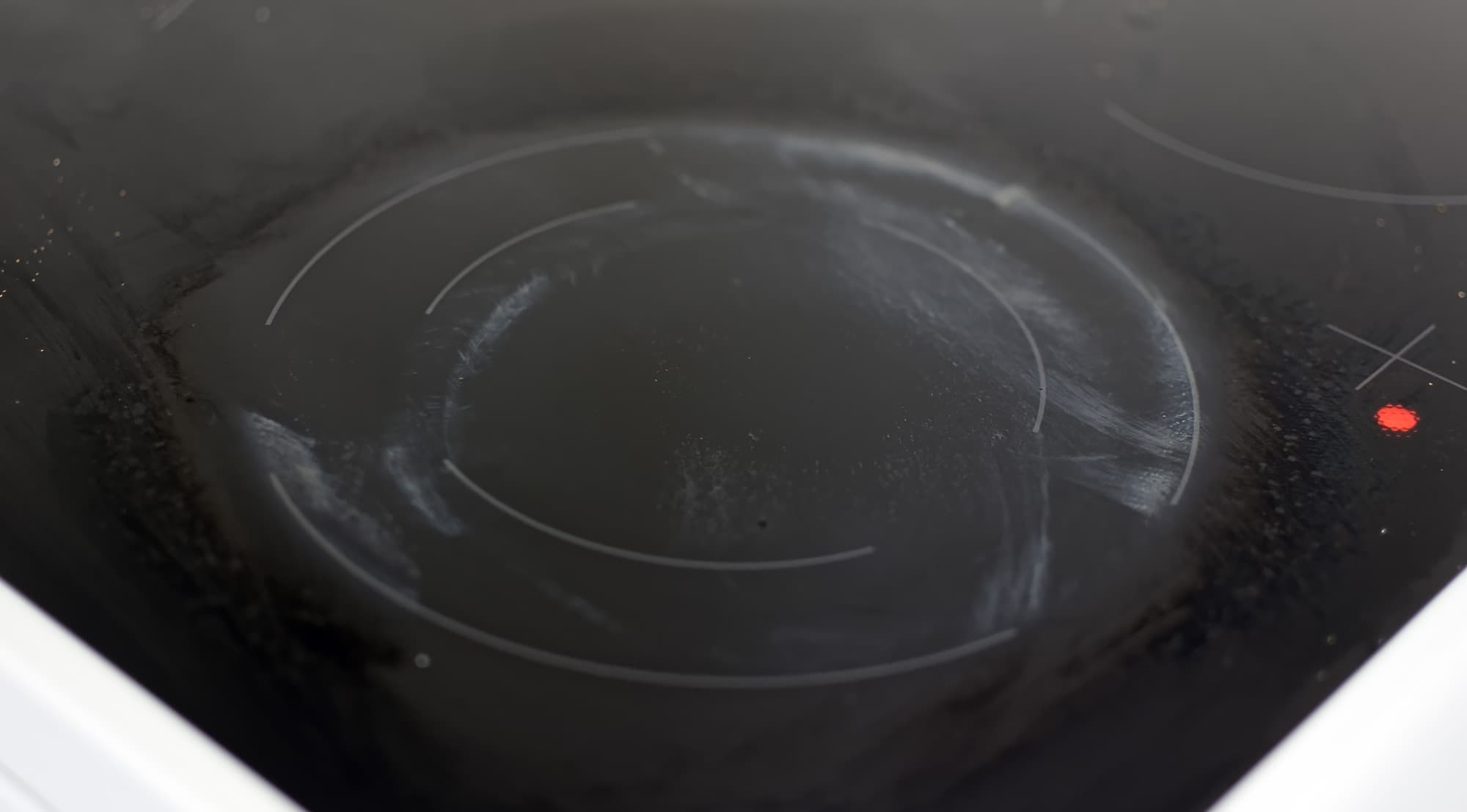 Уход за плитой оказался делом достаточно приятным. Стеклокерамическая поверхность после остывания легко отмывается губкой с моющим средством. Инструкция предупреждает, что́ делать, если после приготовления останутся белесые пятна с металлическим отливом: для их удаления нужно дать конфорке остыть, то есть дождаться, пока погаснет индикатор остаточного тепла, и протереть поверхность влажной тряпкой, смоченной в уксусе.