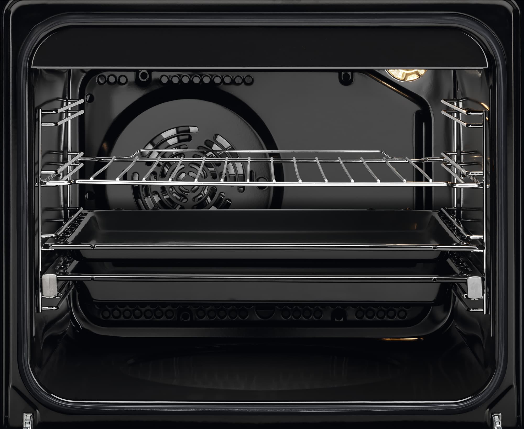 Духовка имеет четыре уровня для противней и решетки. Отдельно прилагаются телескопические направляющие для самого популярного уровня, которые позволят с большим удобством манипулировать выезжающим противнем. Обычно этот уровень — второй снизу.