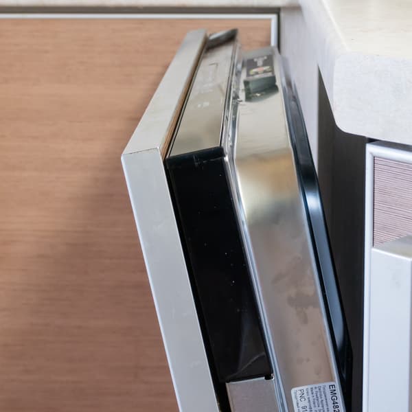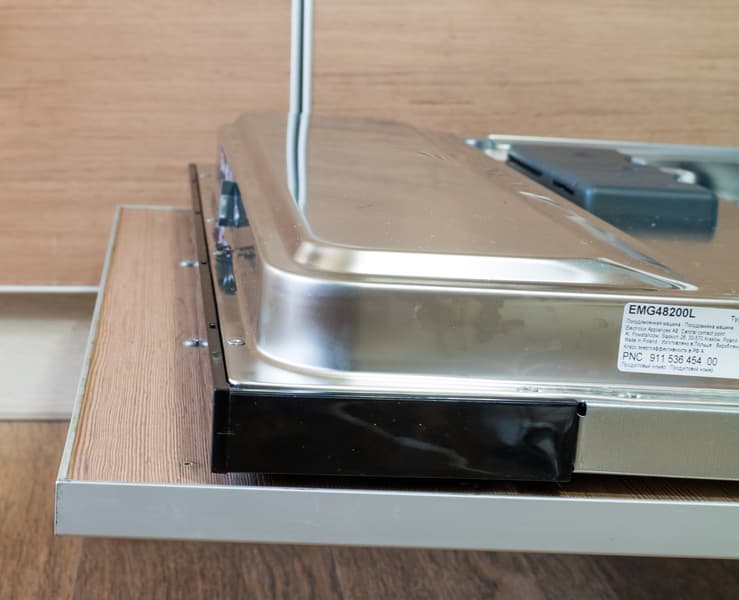 В полностью раскрытом горизонтальном положении край фасада возвышается над верхом дверцы посудомоечной машины примерно на 5 см.