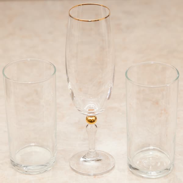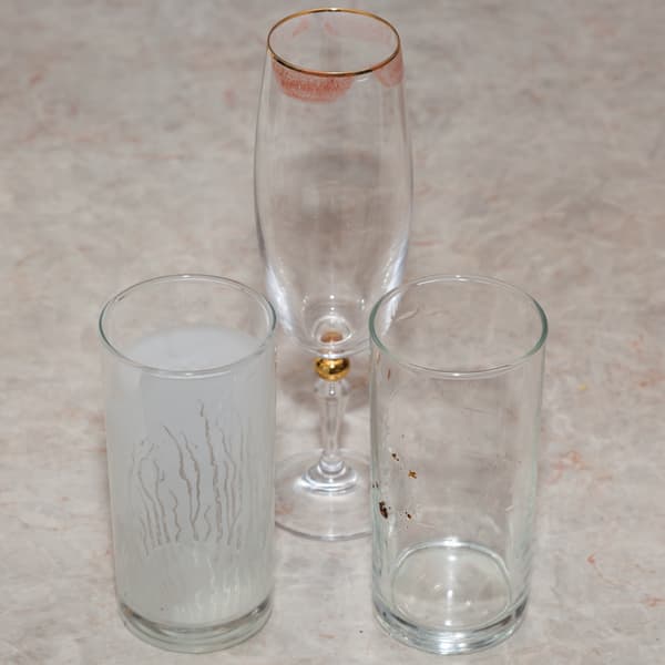 Один стакан потрогали жирными руками, другой оставили после выпитого кефира, чтобы следы молочного продукта подсохли. На бокал для шампанского нанесли пятна стойкой губной помады.
