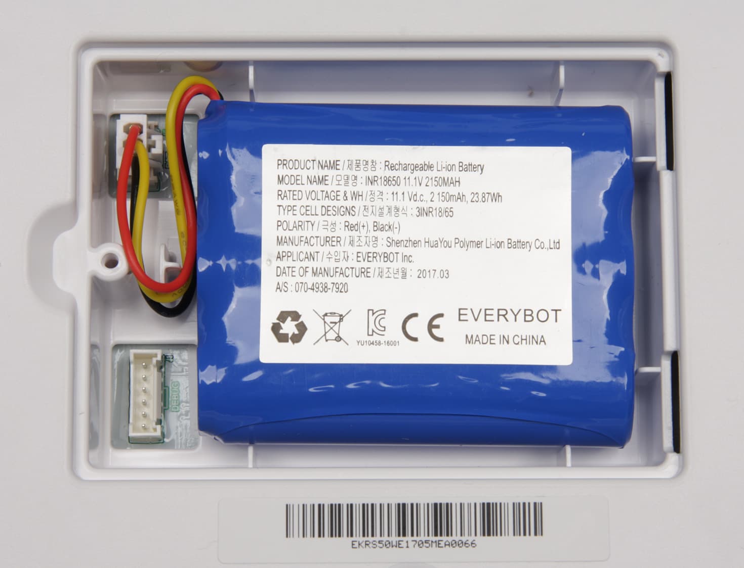 Во время зарядки потребление достигает порядка 20 Вт, заряженный и подключенный к сети робот потребляет около 3 Вт, адаптер, не подключенный к роботу — примерно 0,2 Вт.