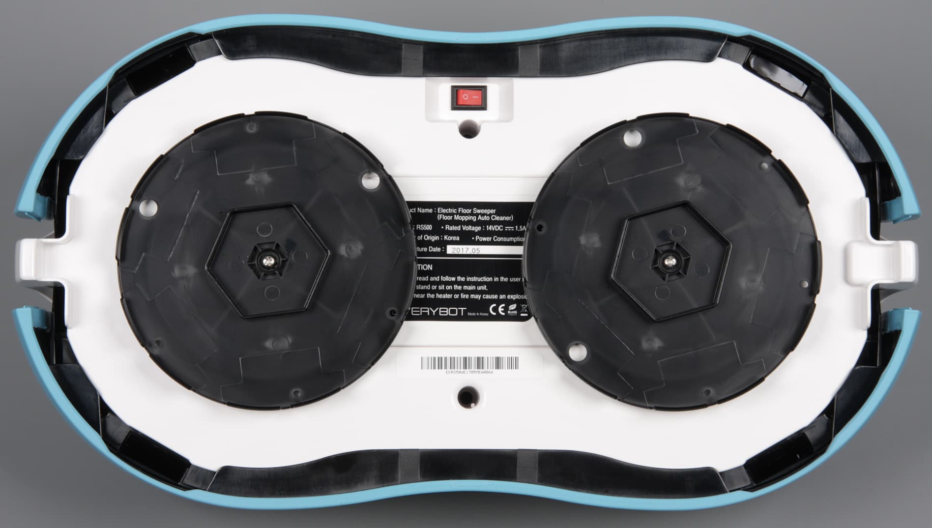 Everybot RS500 оснащен двумя вращающимися насадками из микроволокна, которые поддерживаются во влажном состоянии. Увлажнение пола умеренное, поэтому этого робота допустимо использовать на всех типах гладких полов. В автоматическом режиме он сам перемещается по полу, а в ручном режиме, держа робота в руке, можно чистить горизонтальные и вертикальные поверхности. Работает Everybot RS500 от аккумулятора, обеспечивающего автономность в течение примерно одного часа.