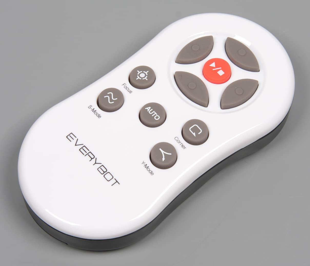 К роботу прилагается небольшой ИК-пульт ДУ. Его корпус пластиковый, белый и зеркально-гладкий сверху и черный матовый снизу. Кнопки изготовлены из резиноподобного материала.
