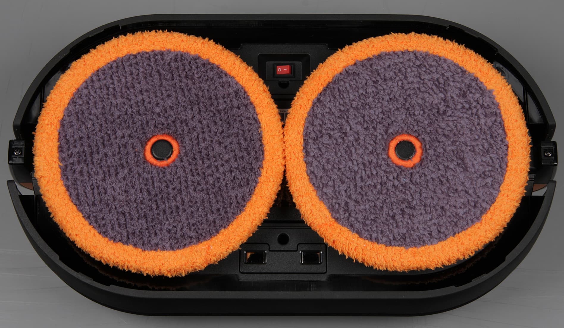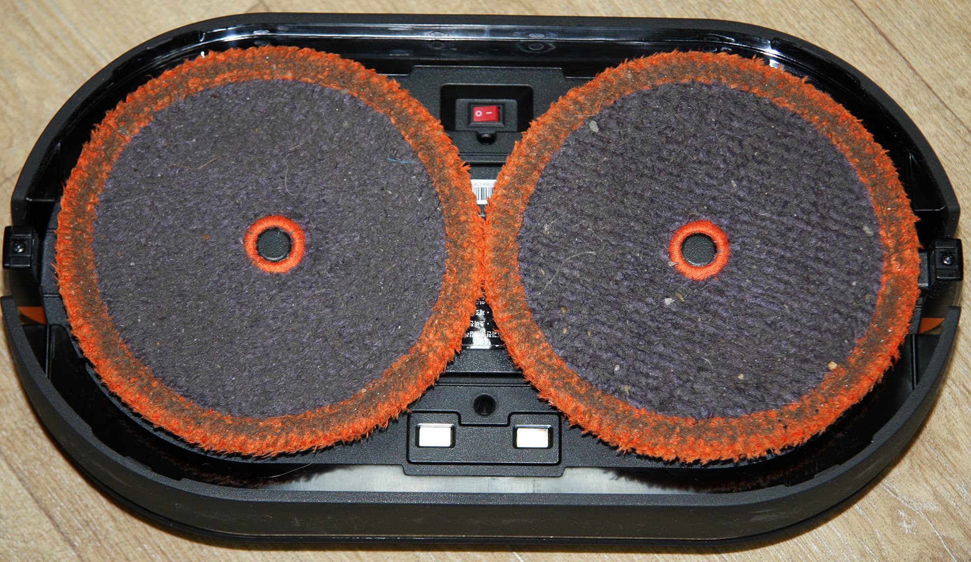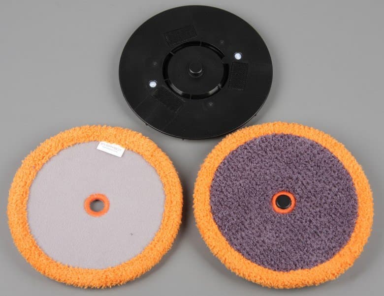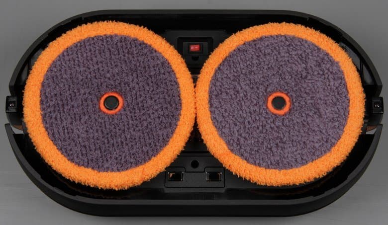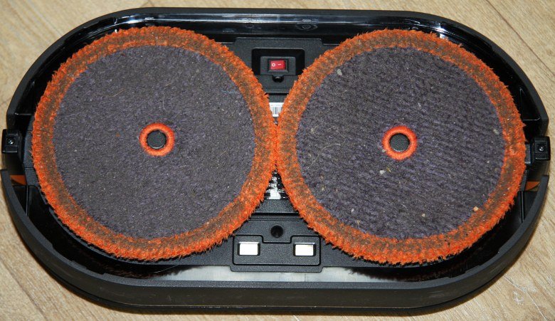 Диски оснащены электрическими приводами и могут вращаться независимо друг от друга. На эти диски закрепляются круглые площадки для протирочных салфеток. А уже на эти площадки на липучках фиксируются сами протирочные салфетки.
