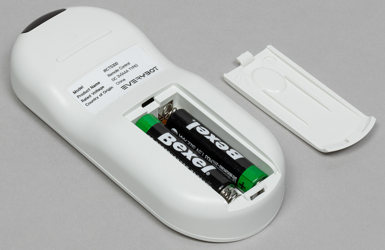 К роботу прилагается небольшой ИК-пульт ДУ в корпусе из белого матового пластика. Почти все кнопки изготовлены из резиноподобного материала, а одна, центральная из жесткого пластика с серебристым покрытием. Пульт удобно лежит в руке и не выскальзывает.