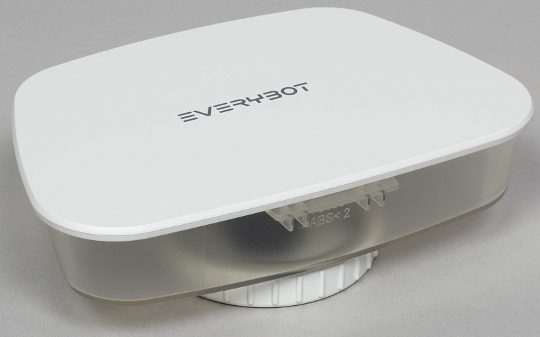 Извлекая из упаковки Everybot Three Spin мы в первую очередь отметили весьма приятное на ощупь и на вид покрытие прибора из белого и черного матового пластика. Все материалы, из которых изготовлен корпус робота выглядят качественными, а сборка очень аккуратной. Если покрутить полотер в руках, создается ощущение дорогого и добротного устройства.