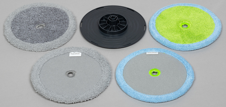 При помощи липучек, на эти диски крепятся моющие накладки — салфетки, или, как их еще называют, мопы. В комплекте два вида.
