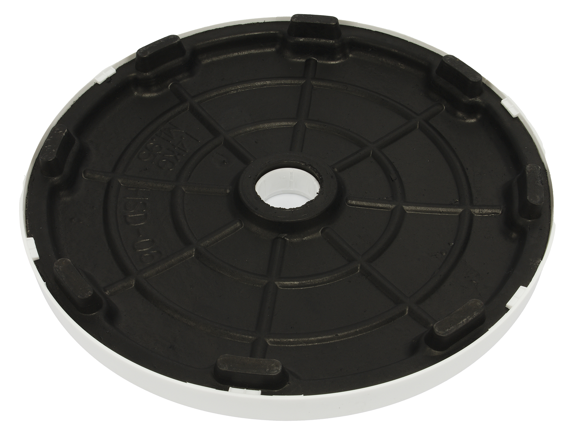 Подставка сделана из белого крепкого пластика сверху и черного пластика снизу. На дне имеются 8 выпуклых прорезиненных ножек.