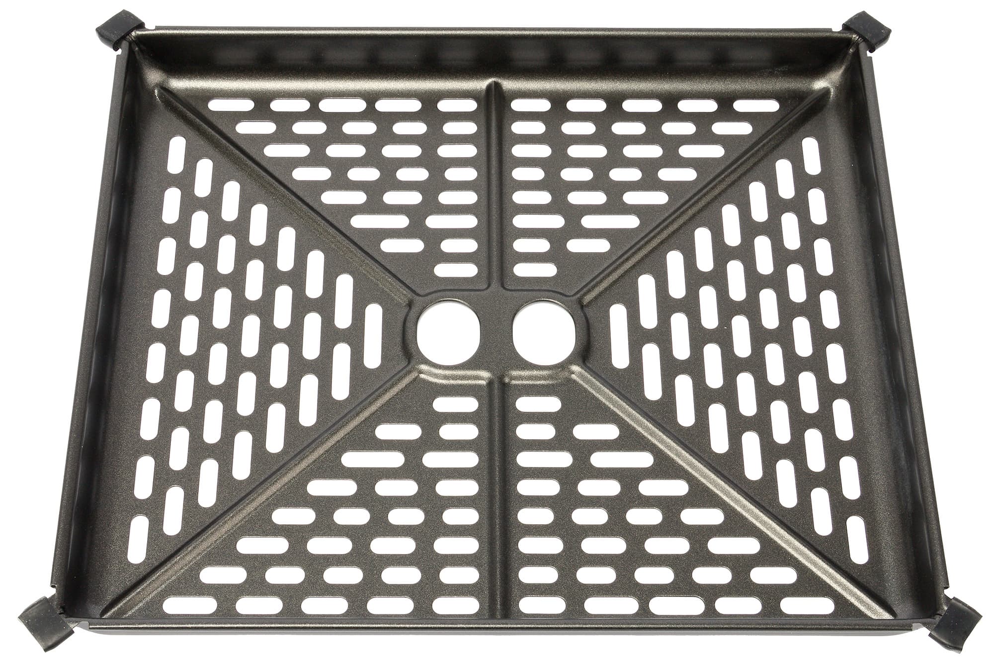 По углам решетки расположены резиновые уплотнители. Они жестко фиксируют решетку в чаше и предотвращают ее смещение при встряхивании. При этом сама решетка устанавливается в чашу без затруднений.