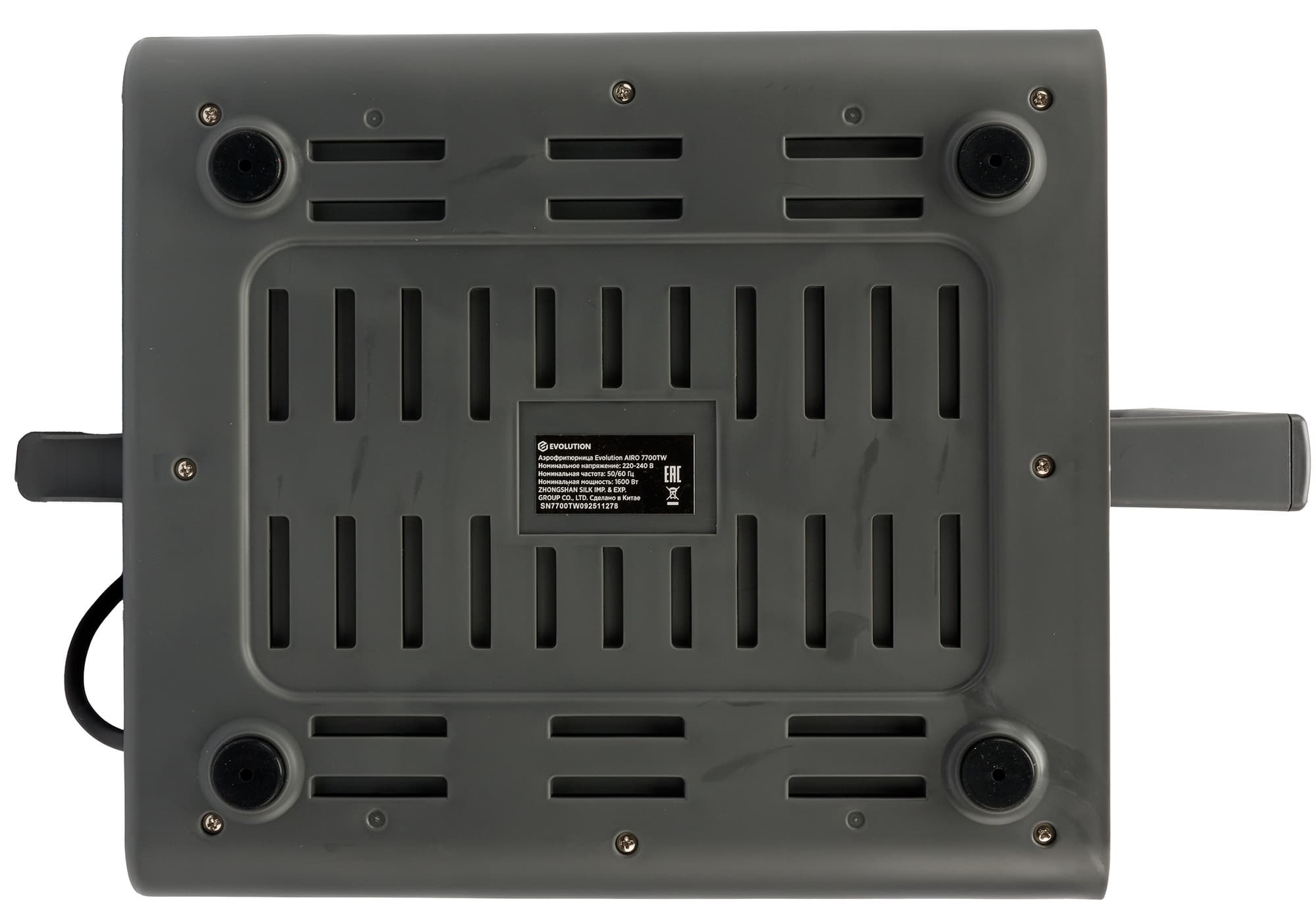 На нижней панели также находятся вентиляционные отверстия и четыре резиновые ножки, предотвращающие скольжение прибора.