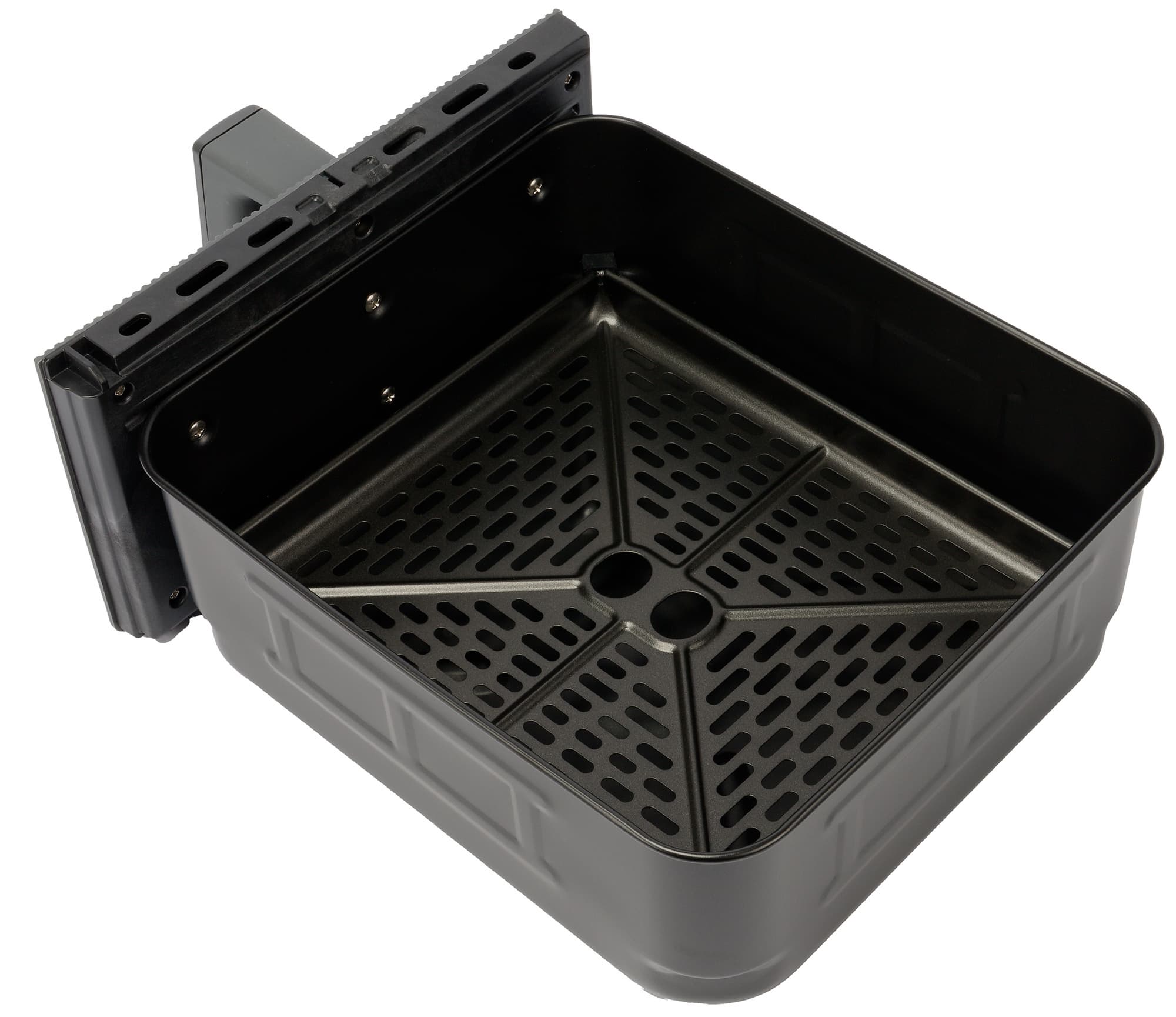 Сама чаша аэрофритюрницы выполнена из металла с антипригарным покрытием; объем чаши — 7 литров.