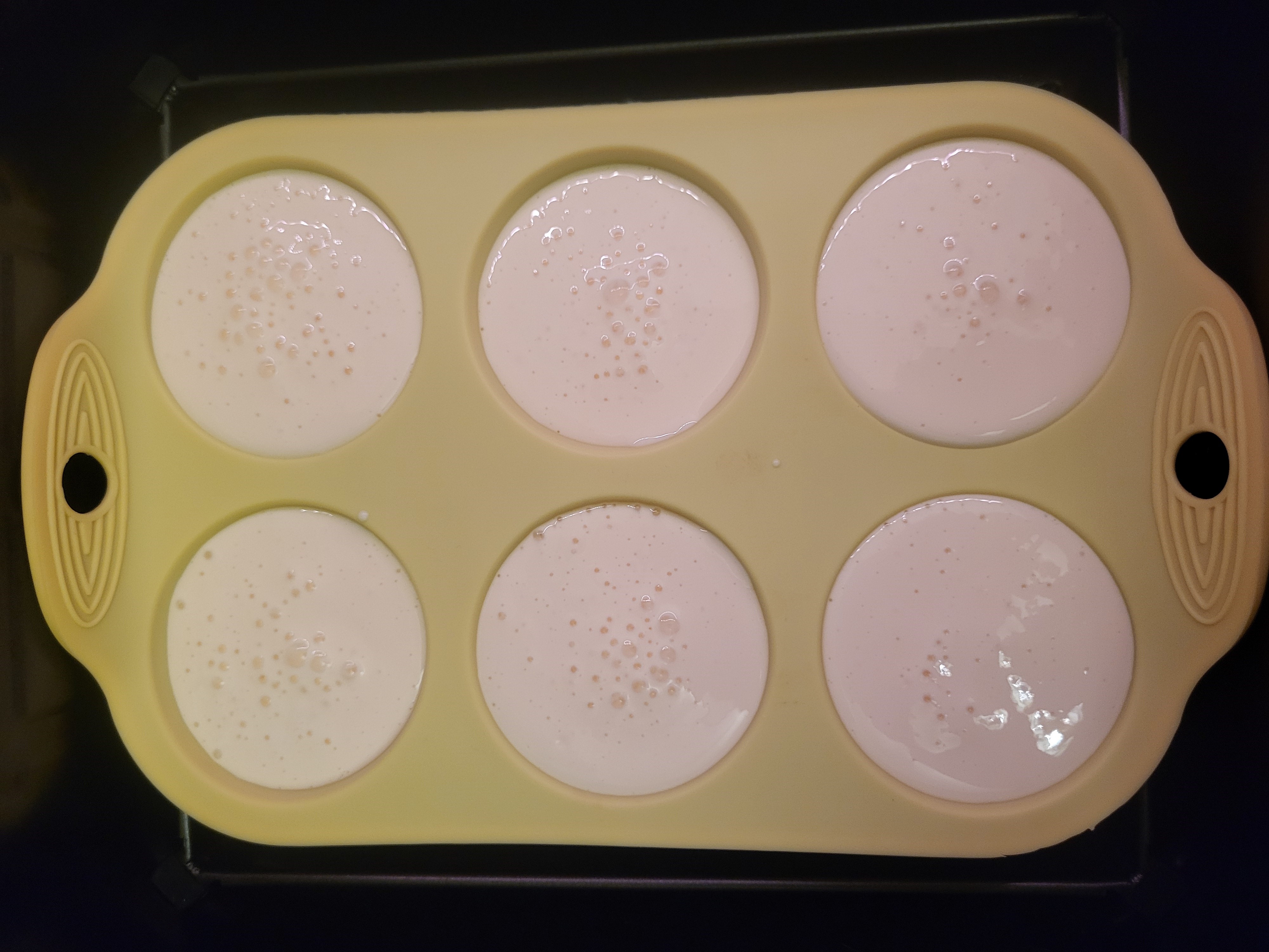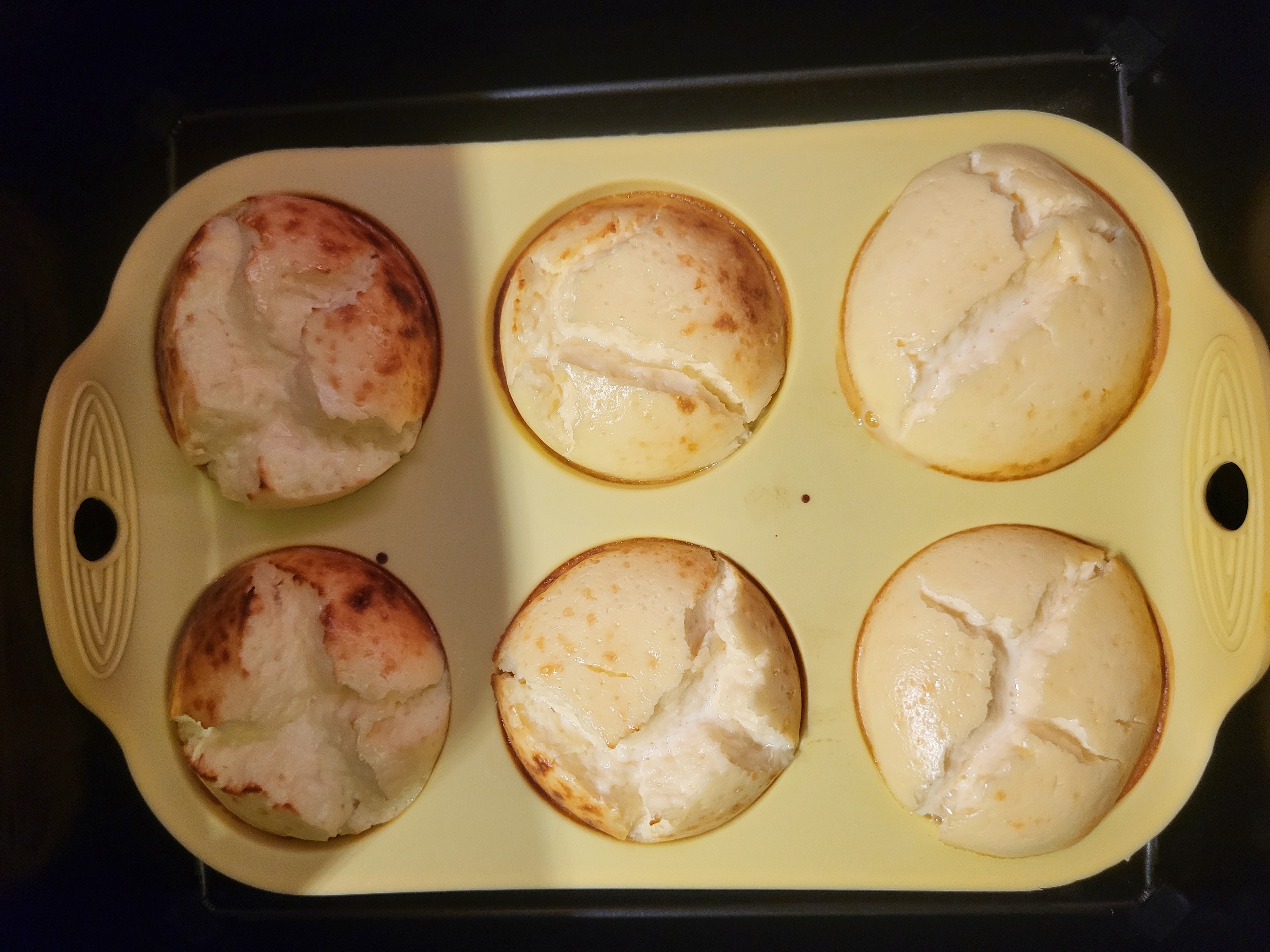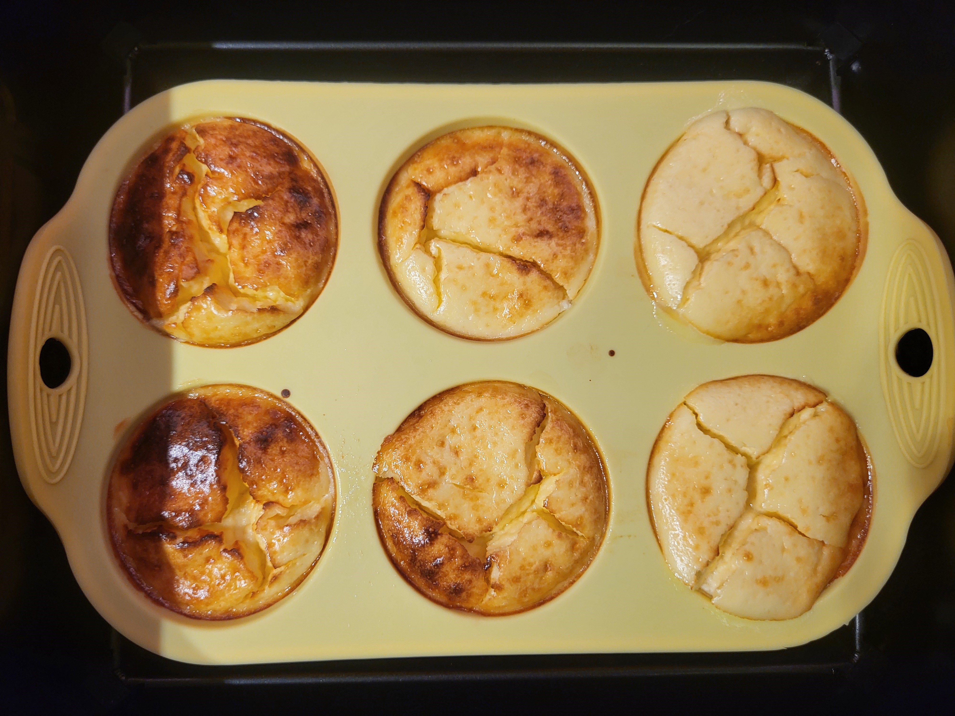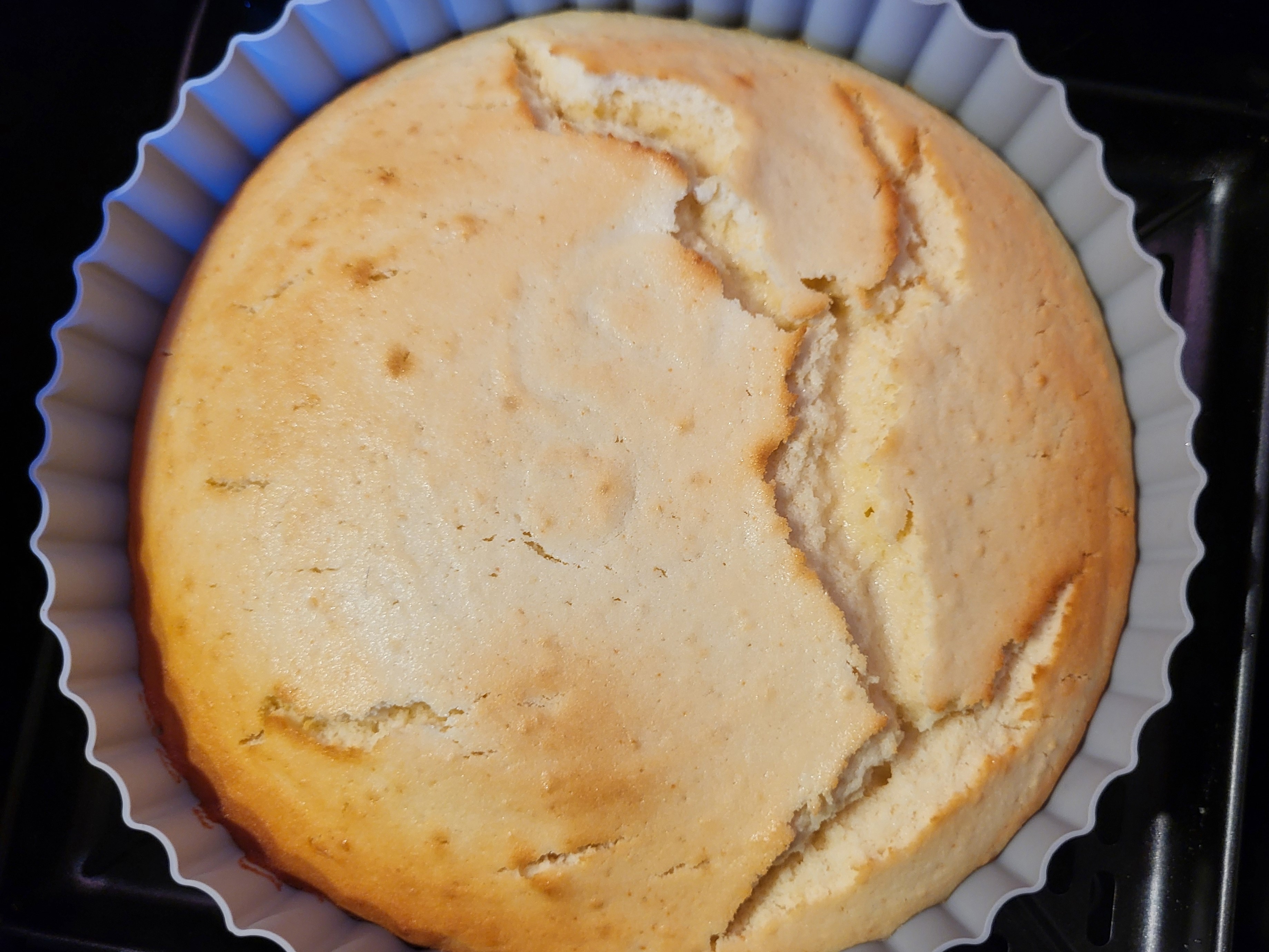 Потом поставили силиконовую форму для приготовления кексов/маффинов в чашу аэрофритюрницы и вылили в нее тесто (нельзя сказать, чтобы это было просто).