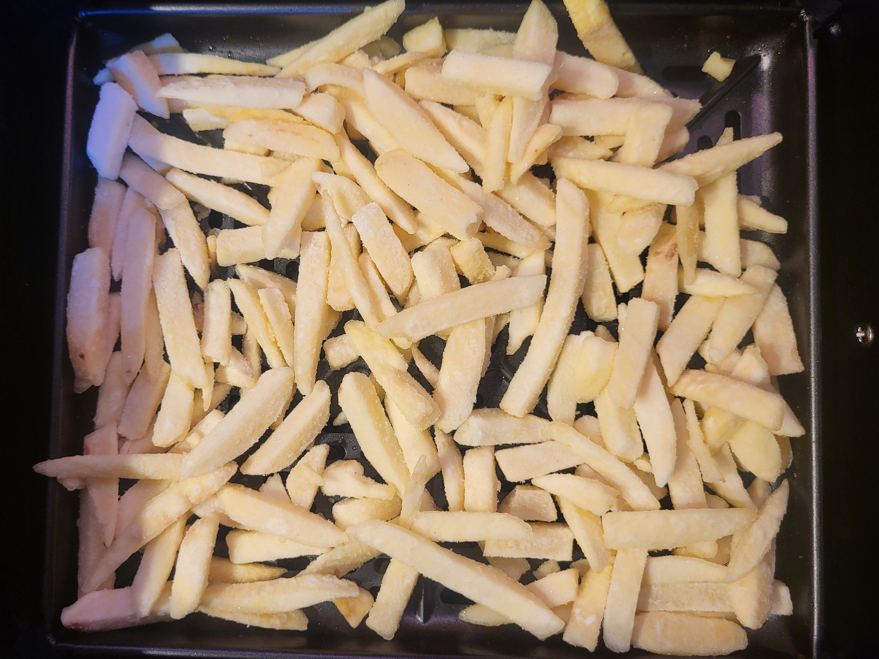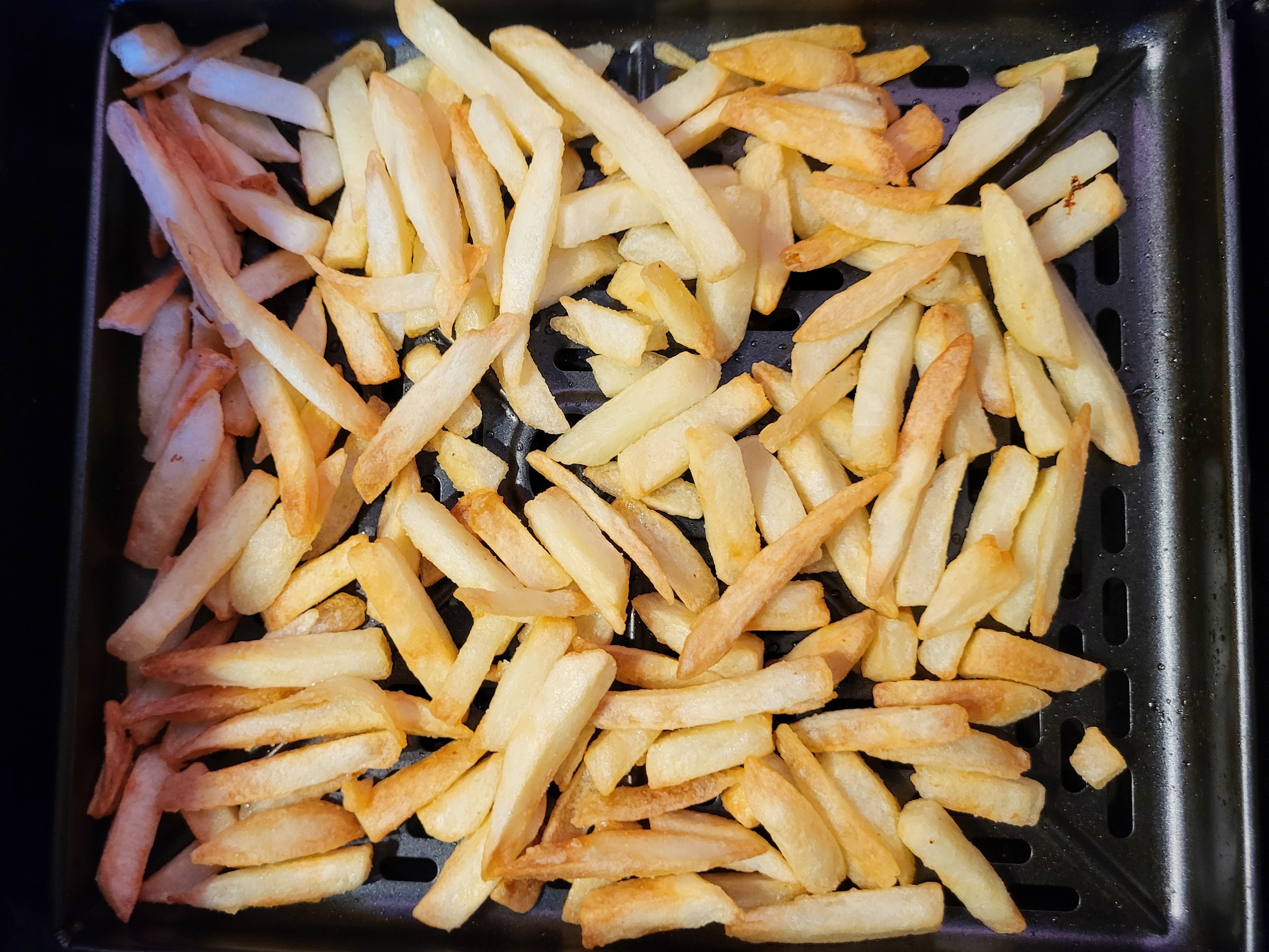 По очереди отправили их в аэрофритюрницу на программу «Картофель-фри», и даже не забыли встряхнуть и перемешать этот картофель-фри за 4 минуты до окончания режима.