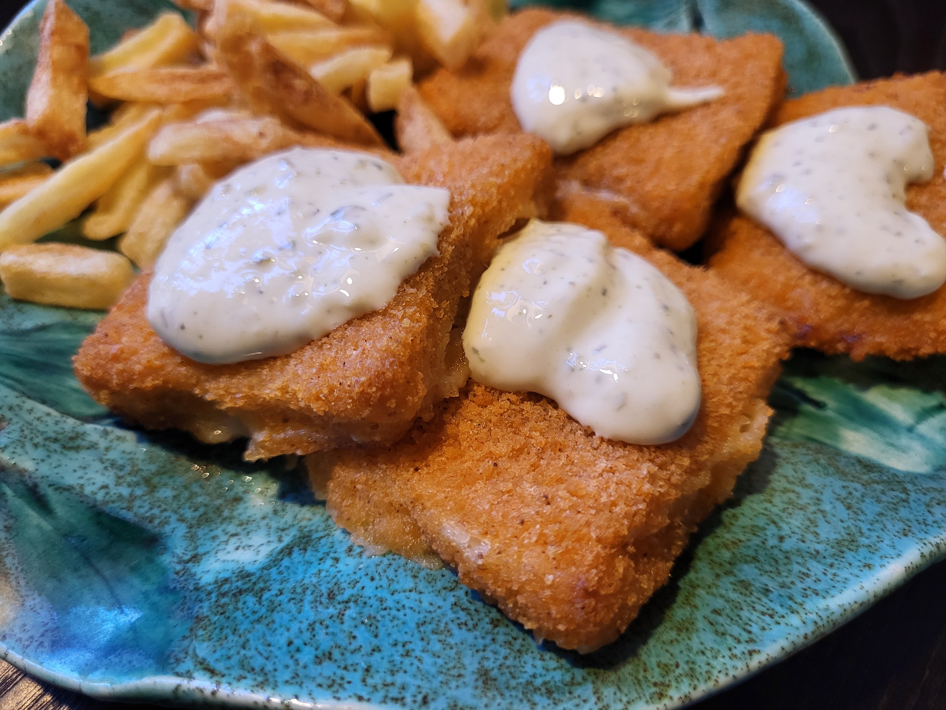 Впрочем, минтай тоже. Мы украсили его купленным соусом тартар.