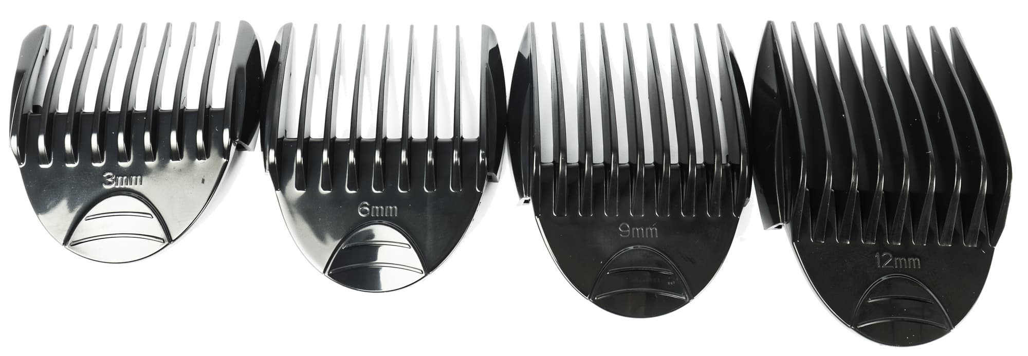 Сами гребни имеют вполне стандартный вид. В комплекте обнаружилось четыре гребня, позволяющие установить длину стрижки в 3, 6, 9 или 12 мм.